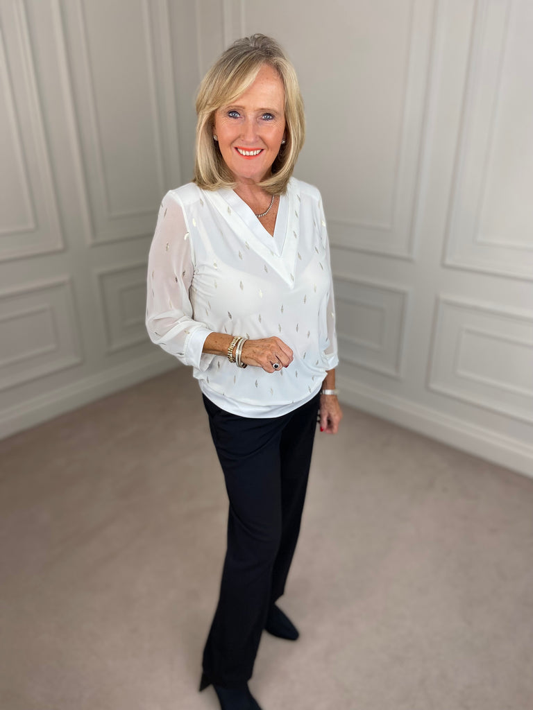 V Neck Blouse - White