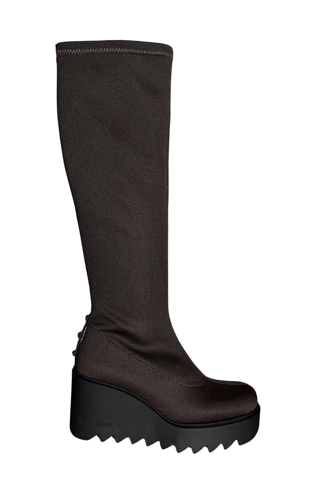 Wedge Knee Length Boot with Studs - Brown
