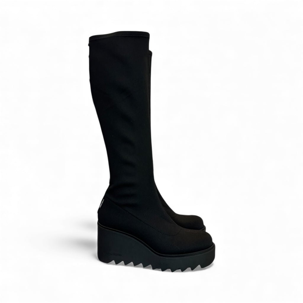 Wedge Knee Length Boot with Studs - Black