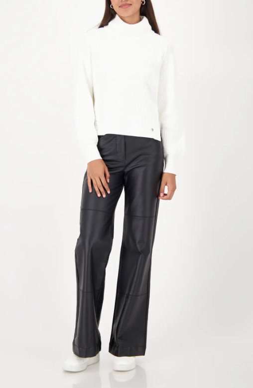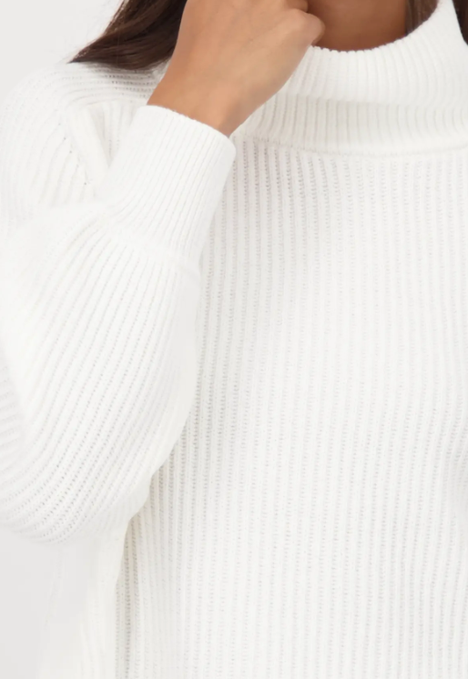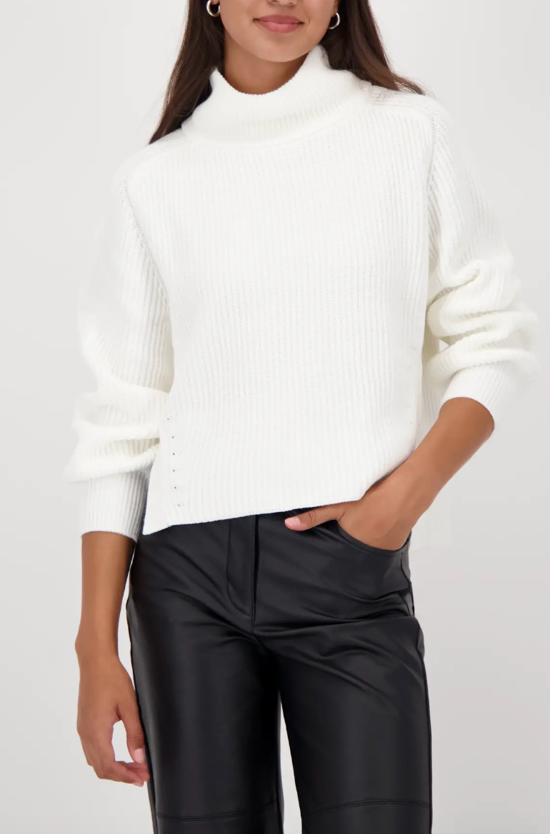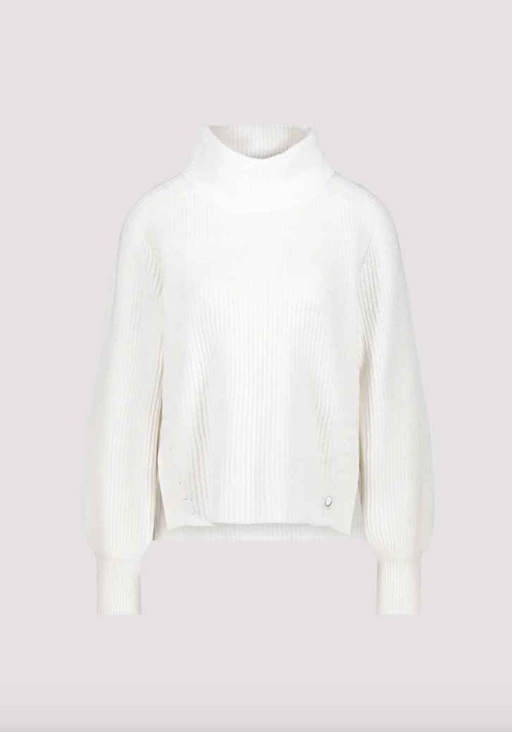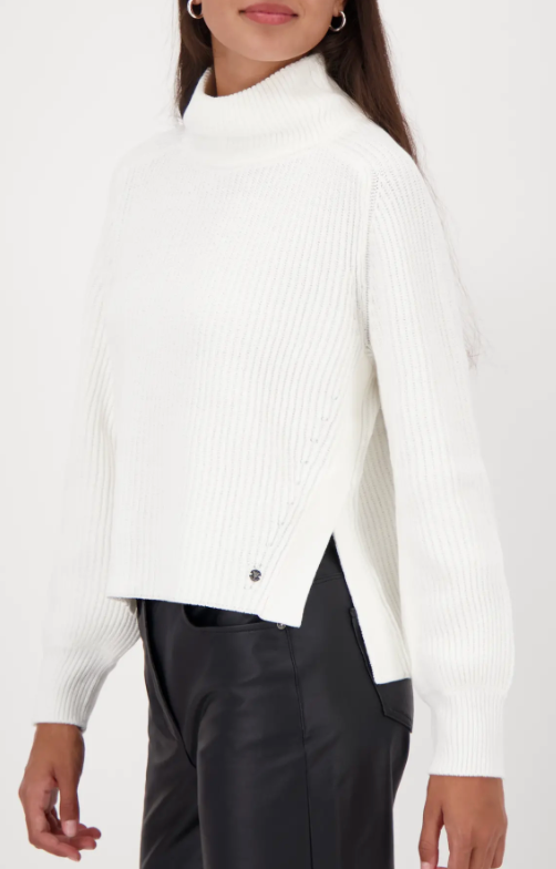 This elegant long-sleeve knit sweater made from a high-quality cotton blend with side slits combines style and comfort.