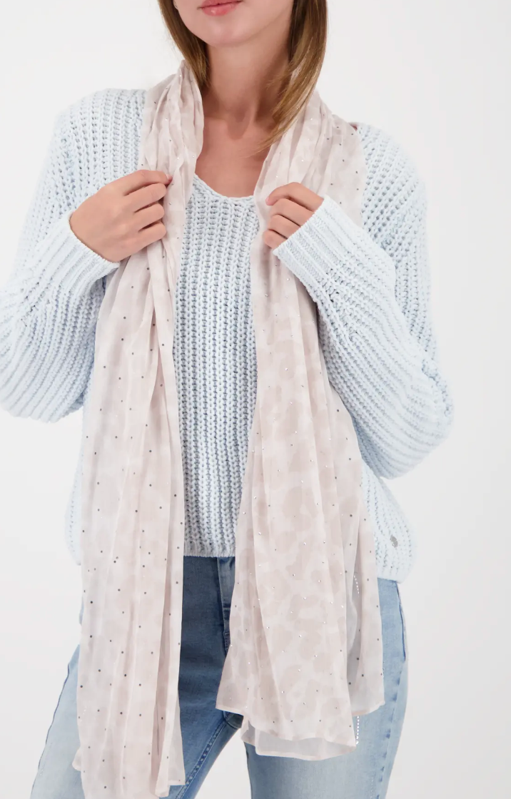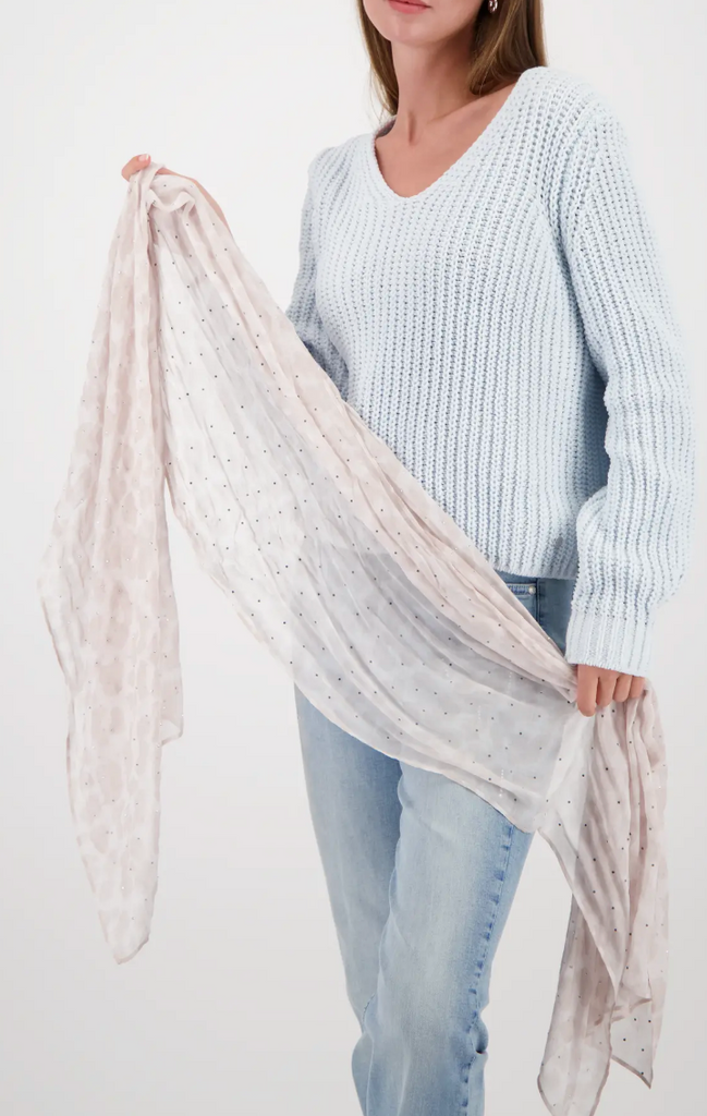 This stylish scarf made of flowing viscose impresses with its striking all-over leopard pattern adorned with rhinestones. The rectangular shape allows for versatile styling options – whether casually around the neck, as a hairband, or as a decorative accessory. The soft fabric feels pleasantly light and adds a special touch to any outfit.