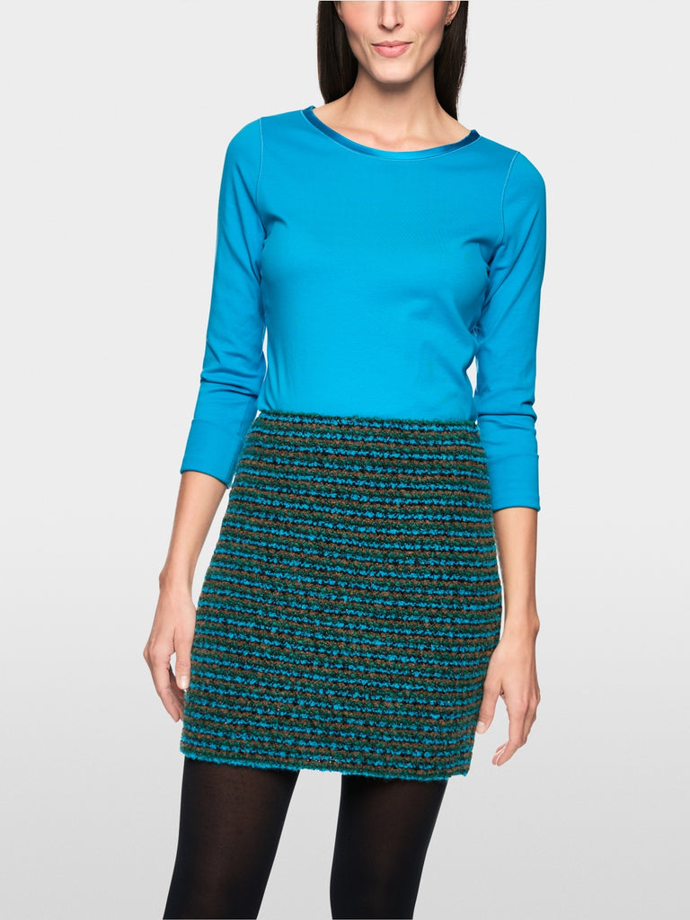 Casually cut long-sleeved top made from stretch cotton – comfortable and stylish at the same time. The light boat neckline is finished with an elegant silk trim for a feminine touch.