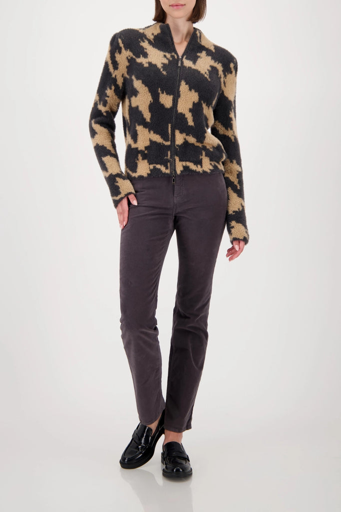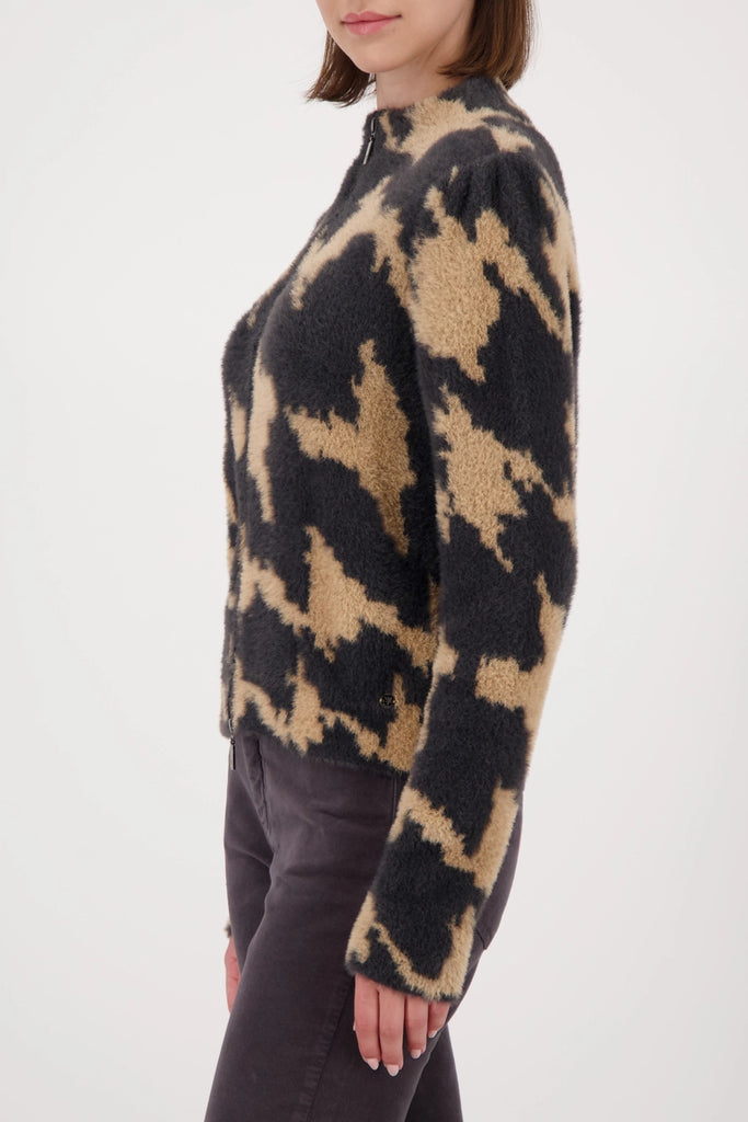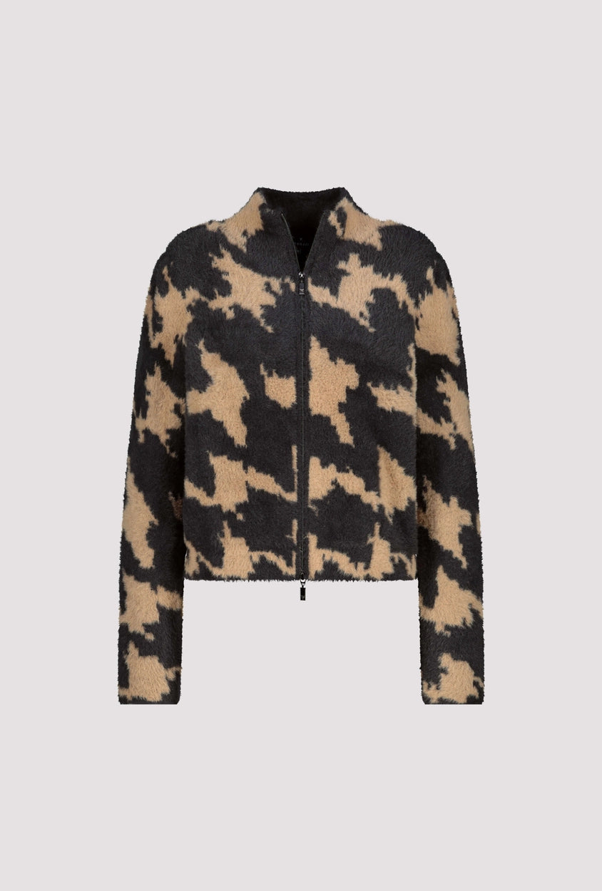 An elegant cardigan with a houndstooth pattern made from a high-quality cotton blend. Perfect for any occasion.