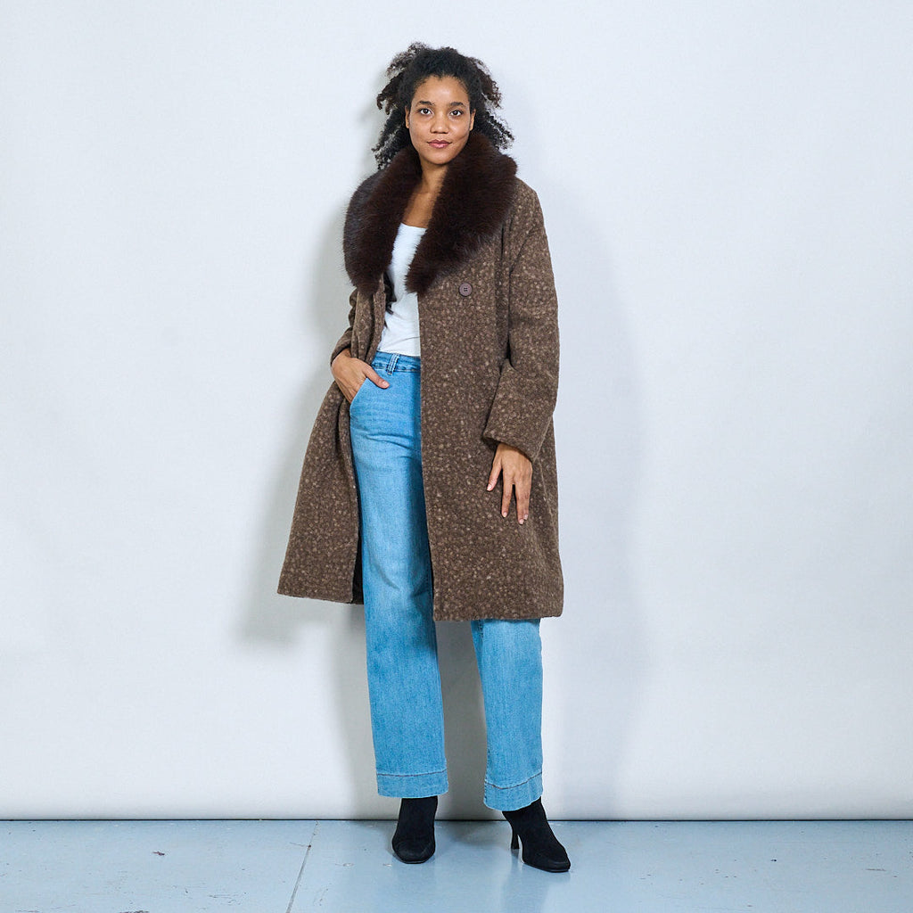 Long Coat with Faux Fur Collar - Coffee