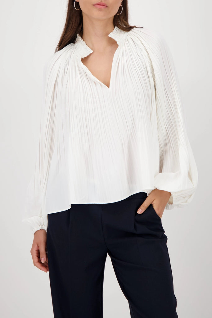 Pattern Pleat Front Blouse - Blue and Burgundy