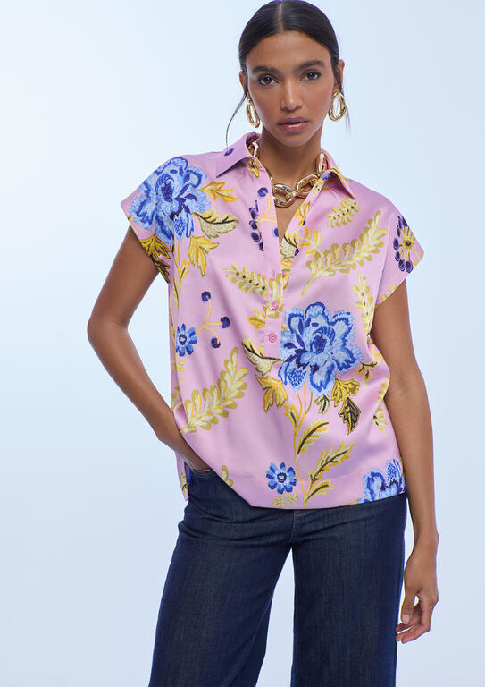 Floral Print Blouse - Pink Multi