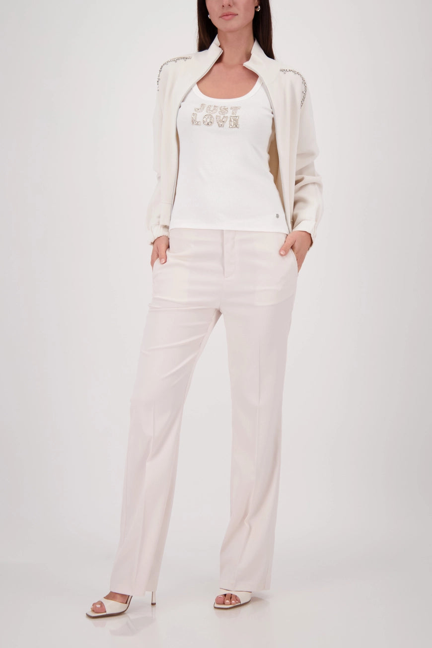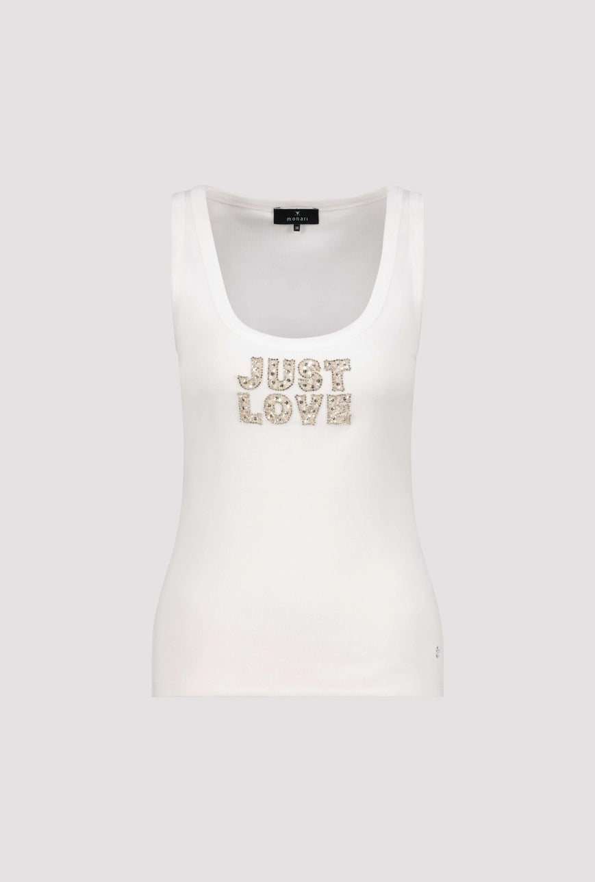 This stylish top made of high-quality cotton with a ribbed texture is adorned with rhinestones and a "Just Love" inscription.