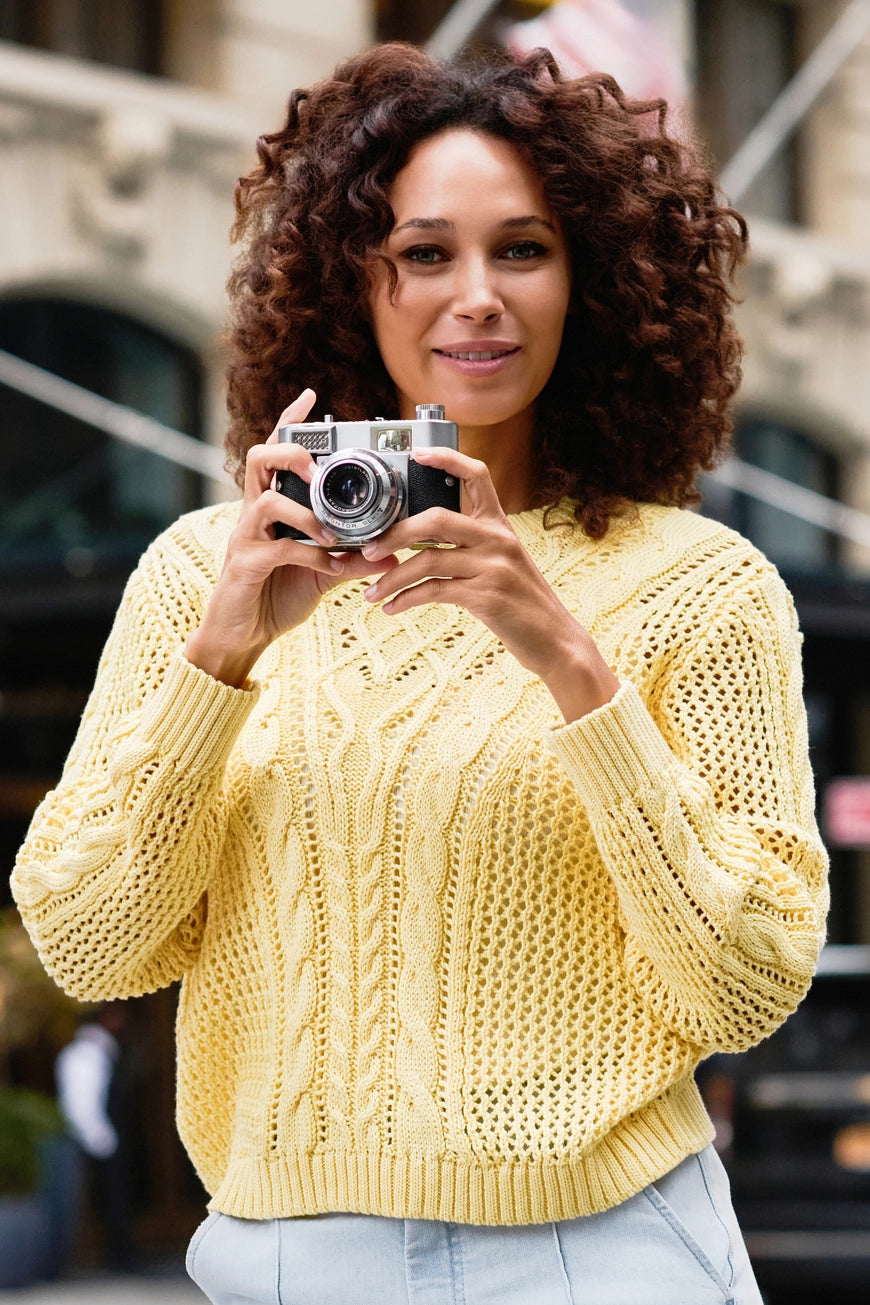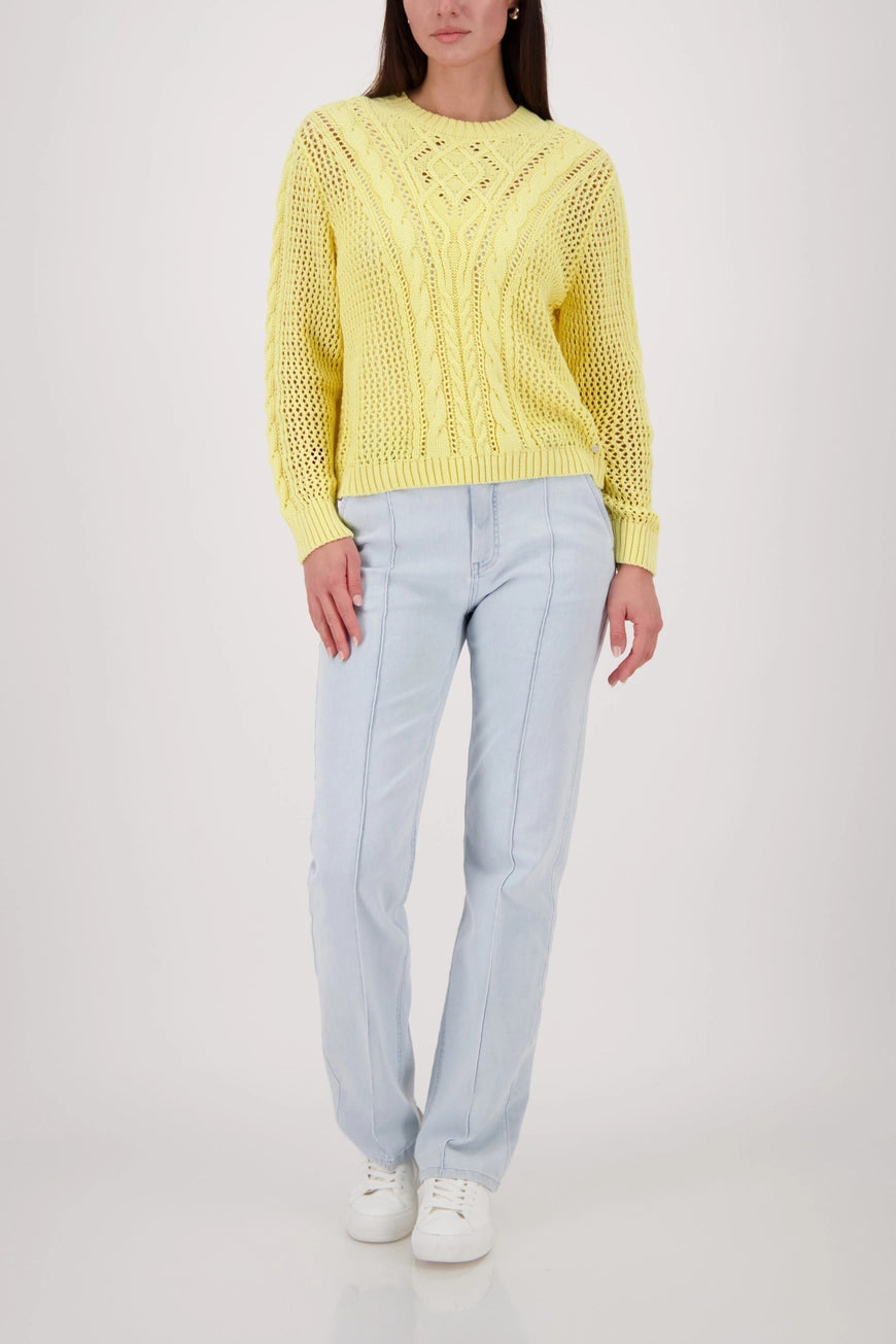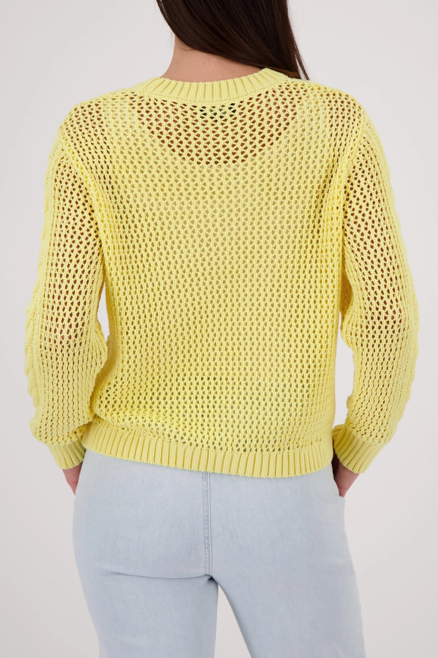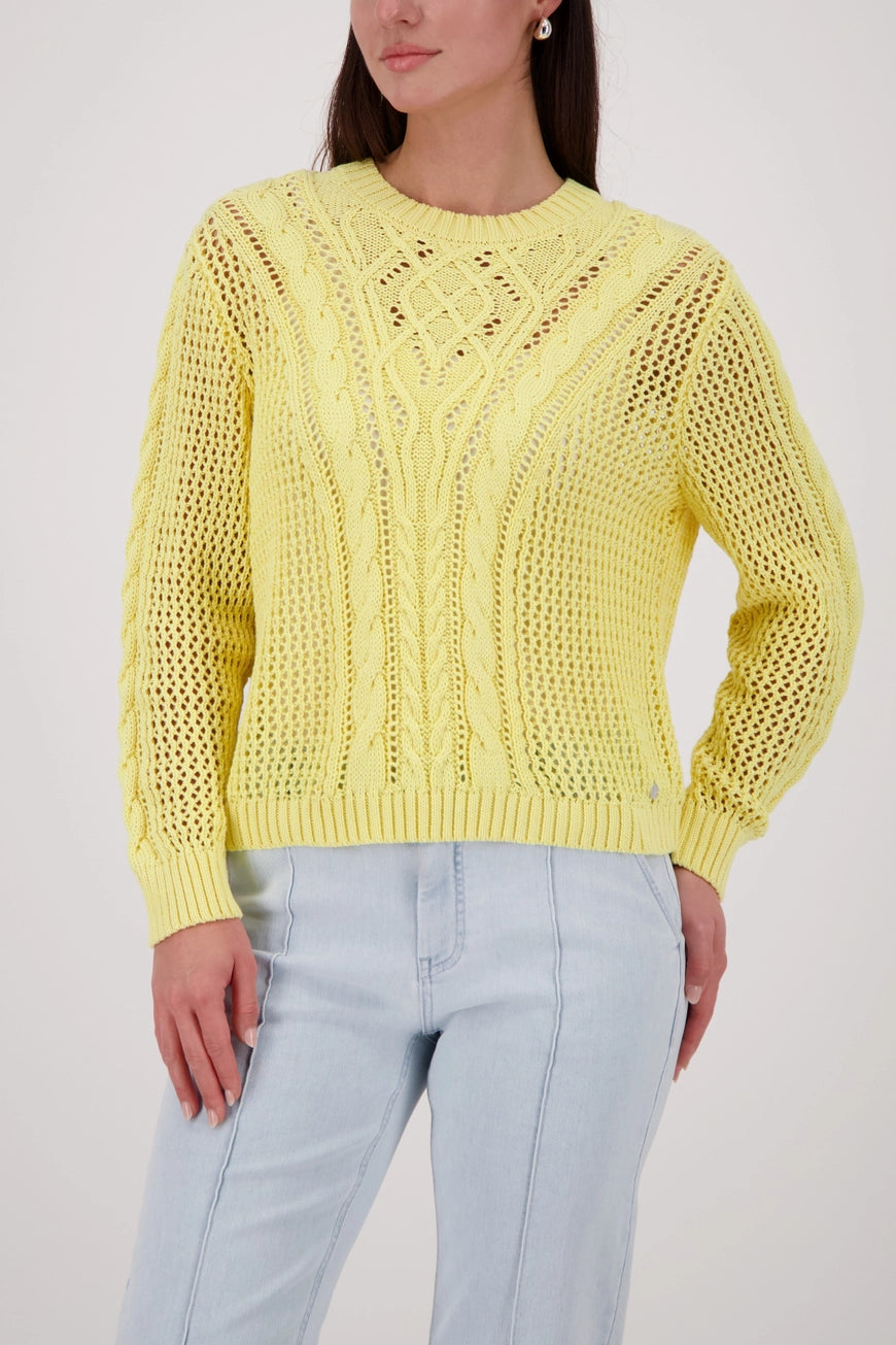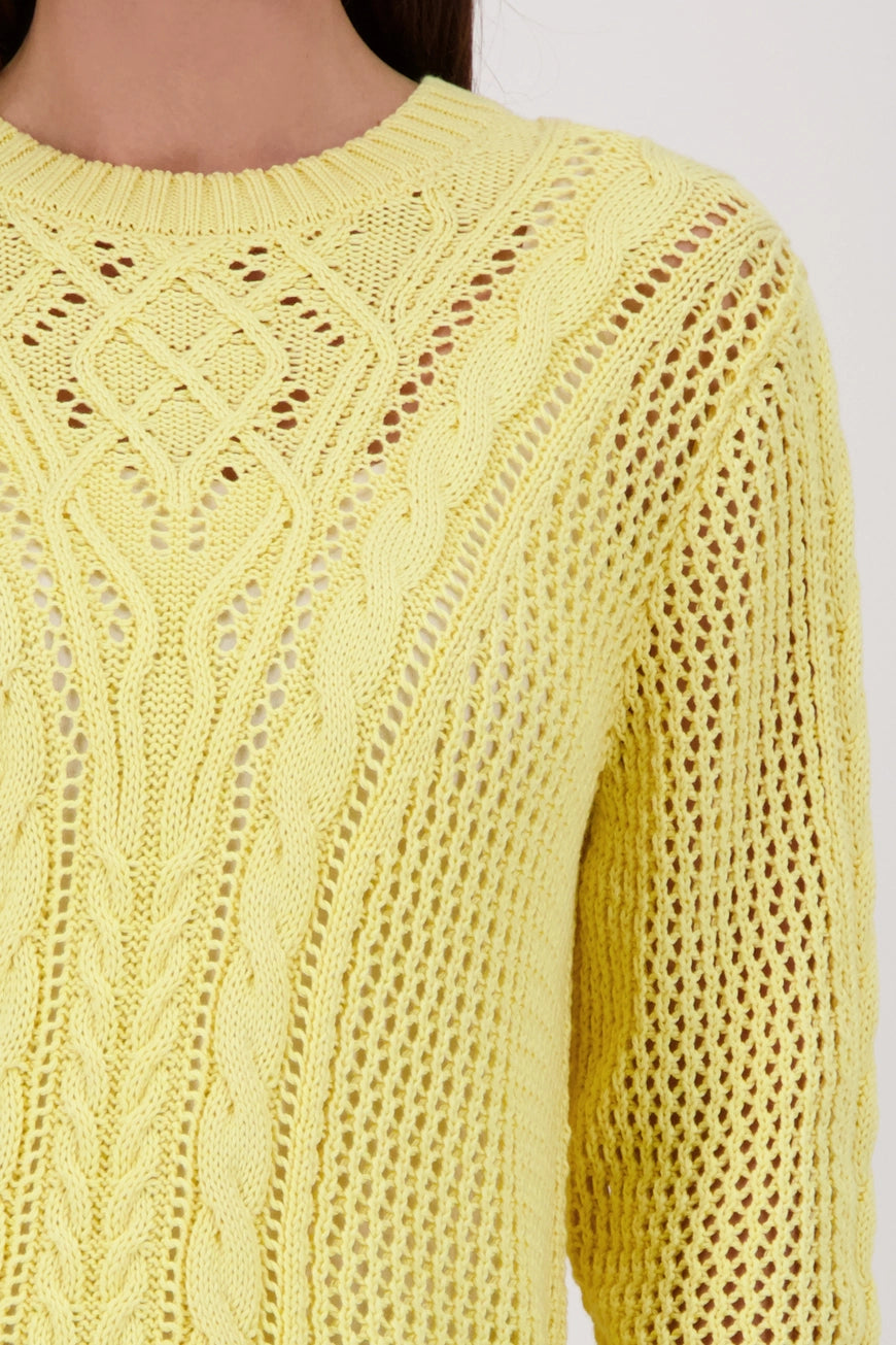 Elegant ajour knit sweater made of high-quality cotton and flowing viscose, decorated with shiny Lurex. Perfect for confident women.