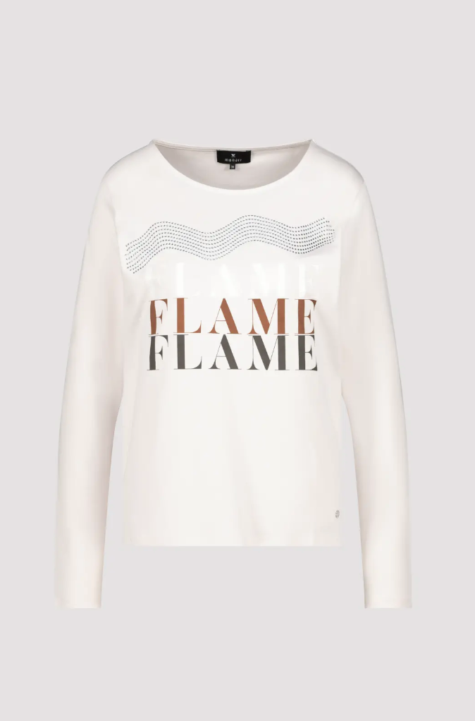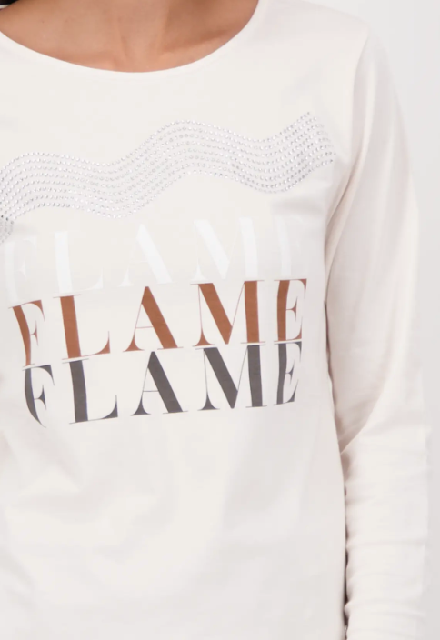 Elegant long-sleeve shirt made of 100% cotton with a "be the Flame" lettering and sparkling rhinestones.