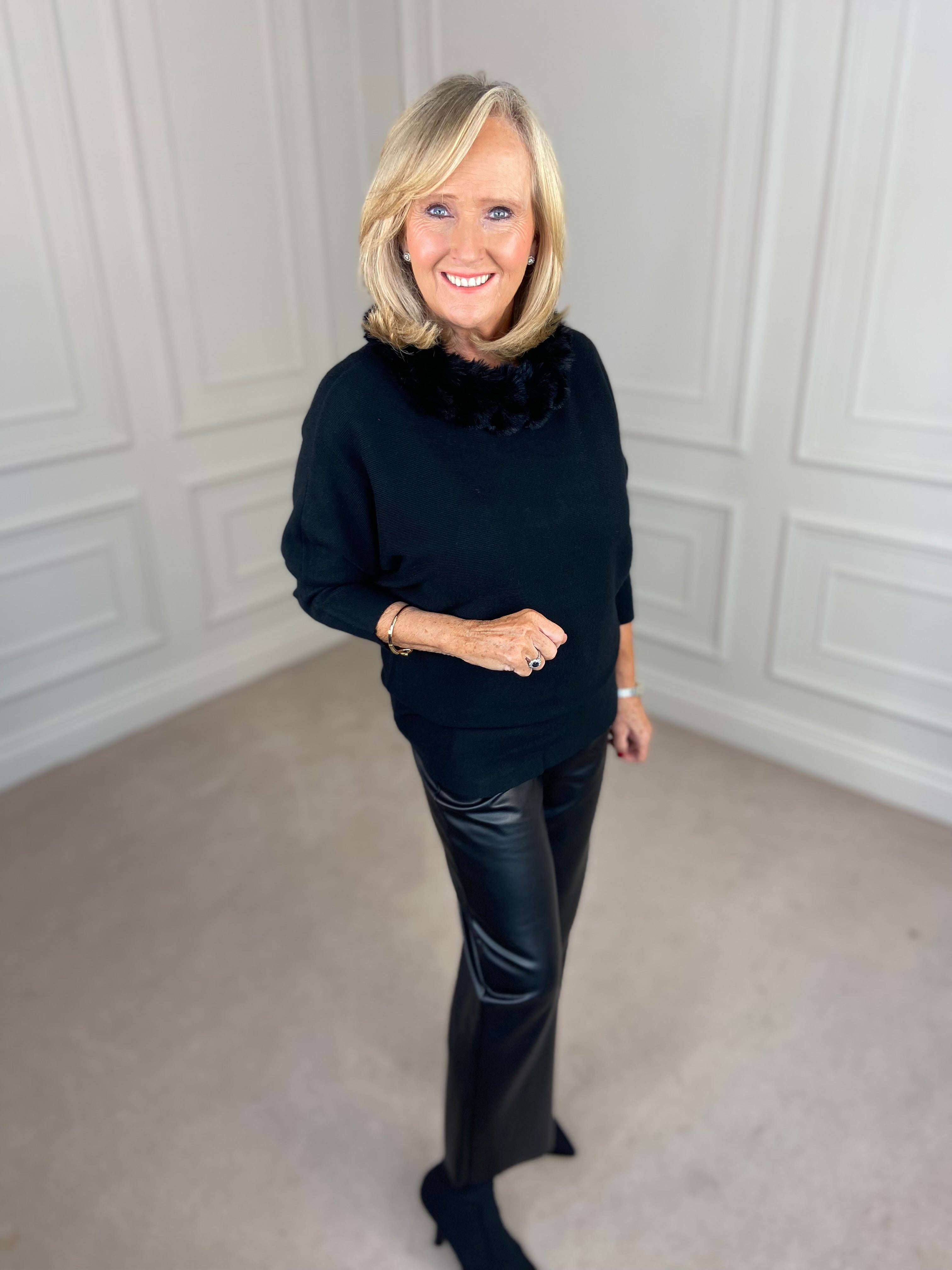 Fur Trimmed Sweater - Black