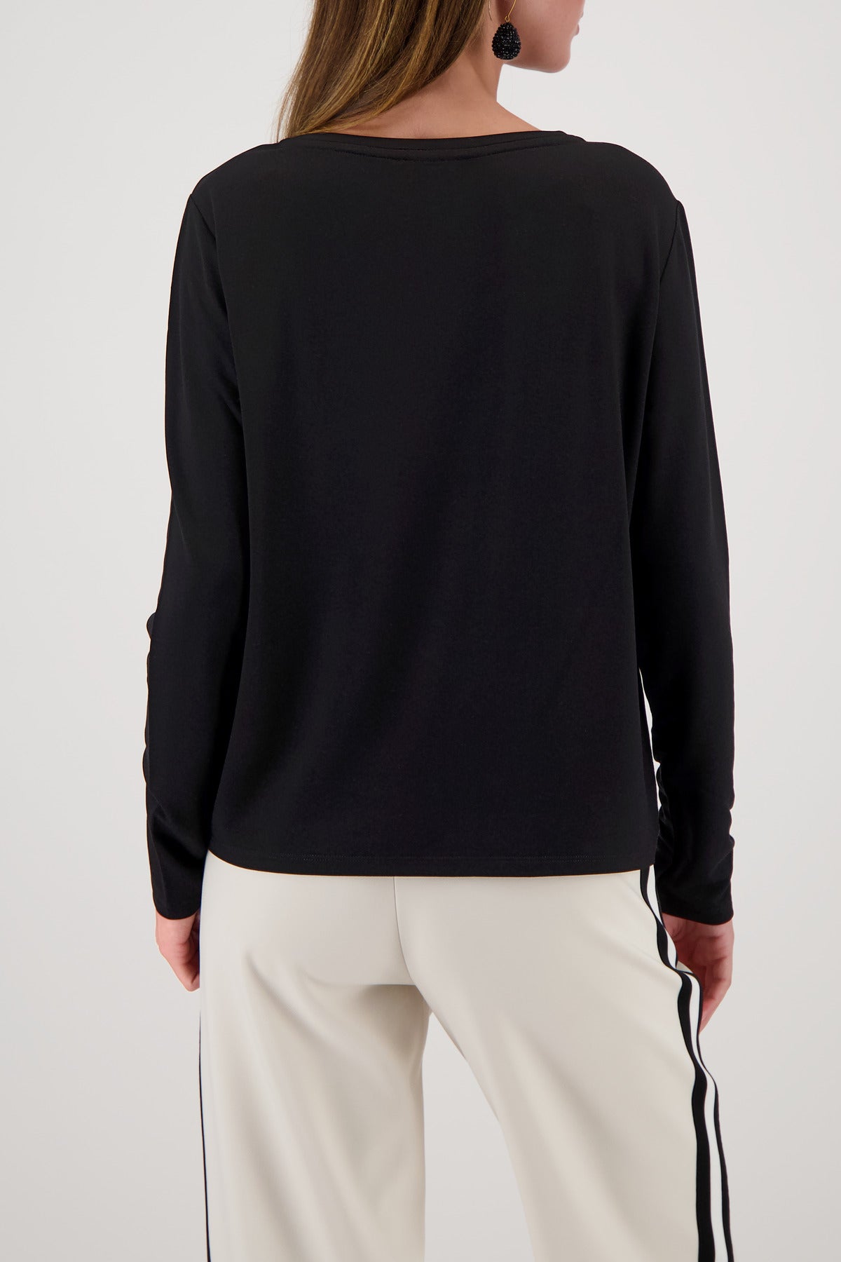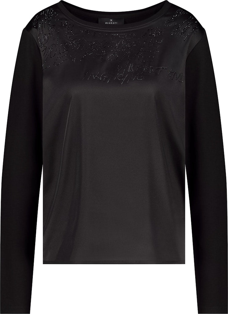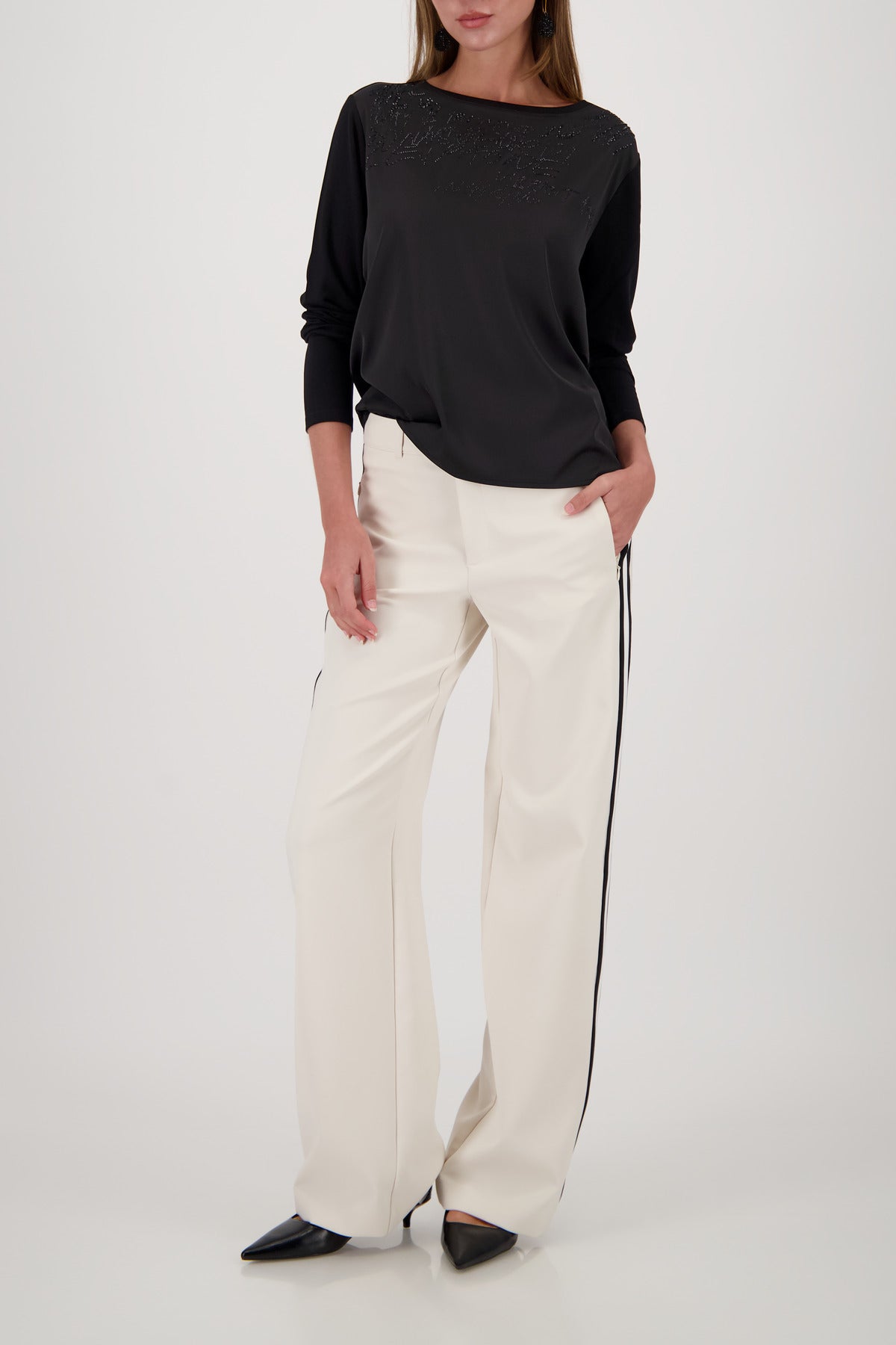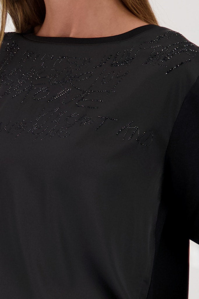 Elegant long-sleeve blouse made of flowing viscose with sparkling decorative lettering
