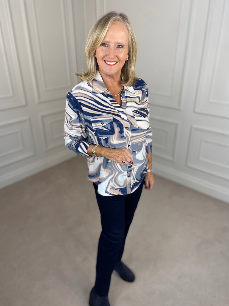 Swirl Blouse - Blue and Sand