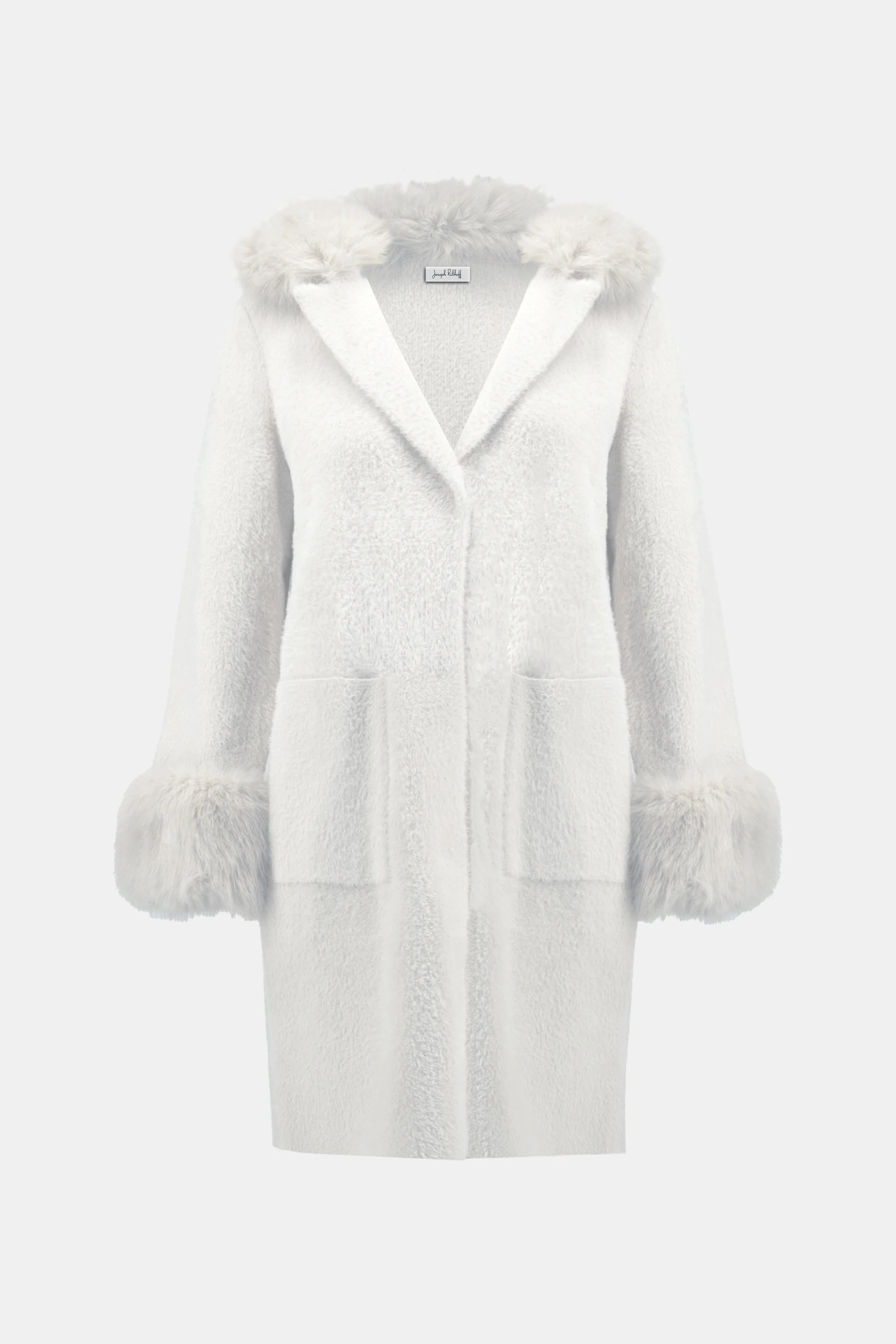With a luxuriously soft feather yarn and faux fur trim at the collar and cuffs, this chic sweater coat is everything you want it to be; cozy, stylish, and versatile.