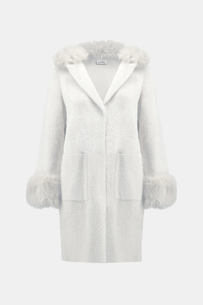 Feather Yarn and Faux Fur Sweater Coat - Winter White