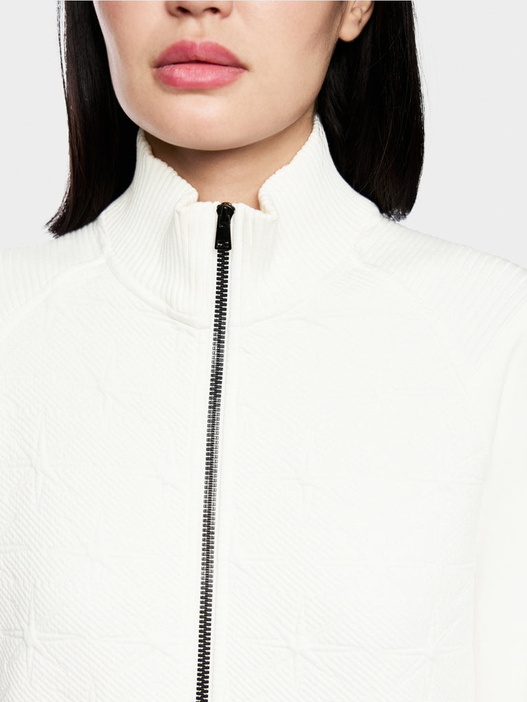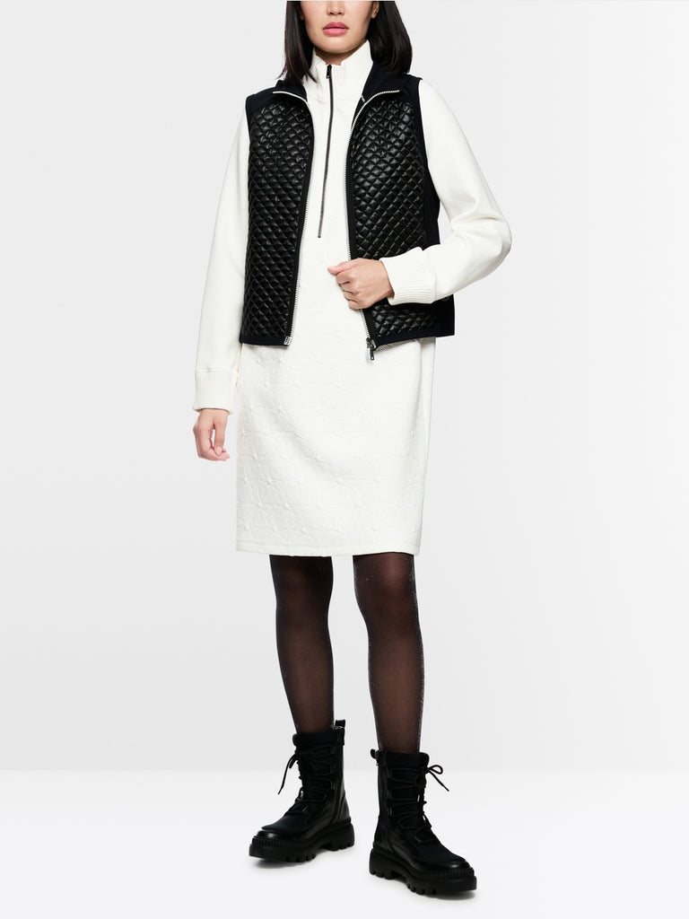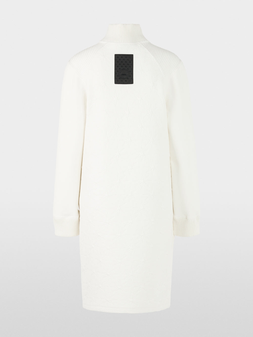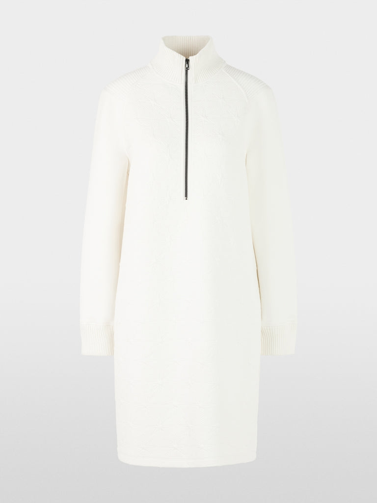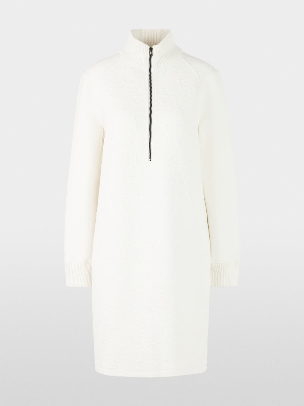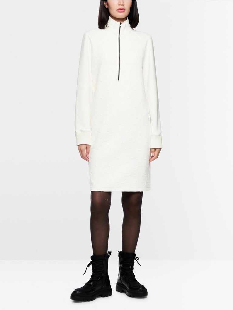Close-fitting dress with long sleeves and textured material in a raised Snowstars design. The special feel of the material creates an elegant look. The 10 cm high stand-up collar, the cuffs and an insert on the shoulder are made of sporty ribbed knit. A zip at the neckline adds functionality with a modern twist. Ideal for sporty styles with an elegant touch.
