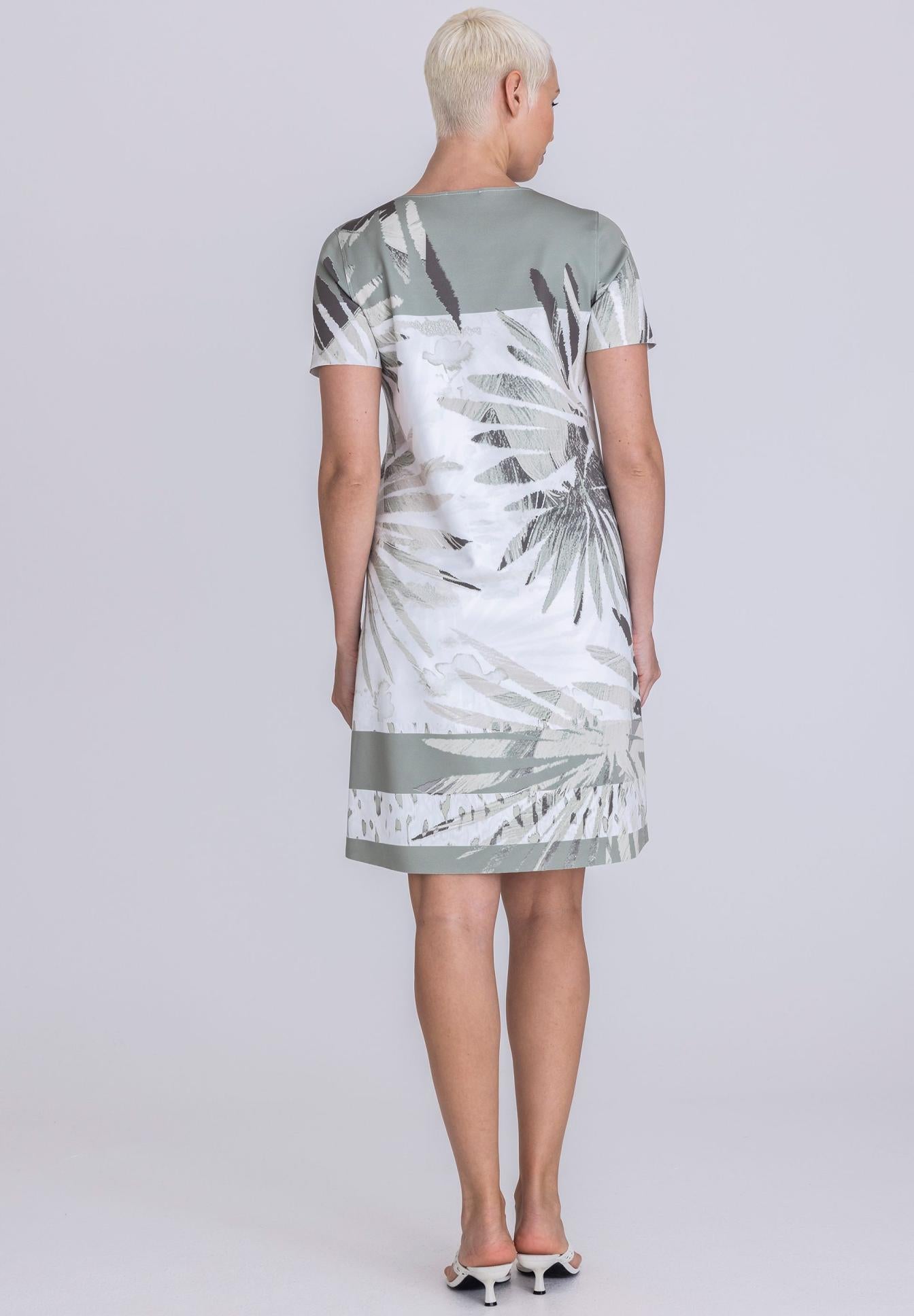 Palm Print Dress - Khaki and White