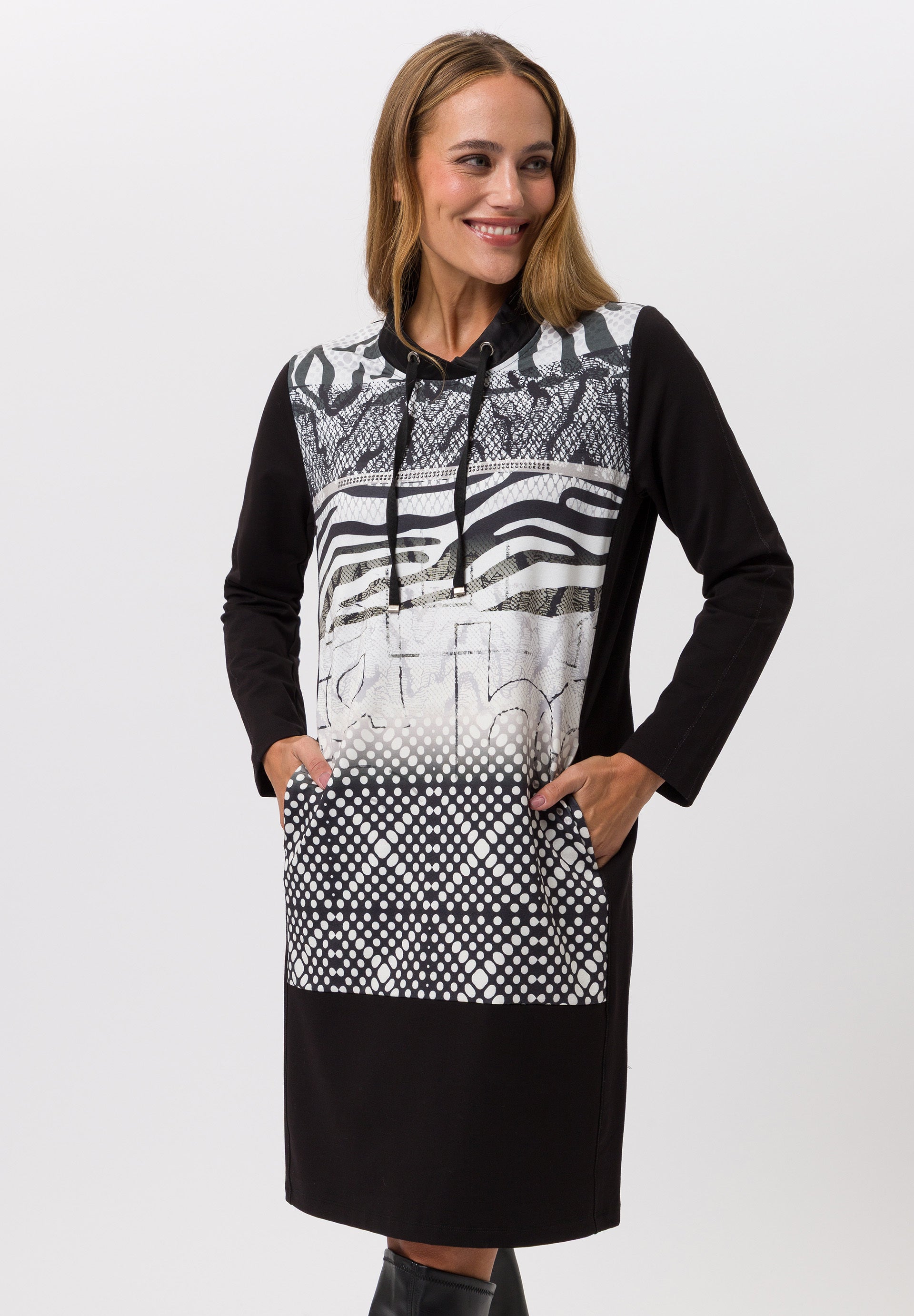 Print Dress With Toggle Neck - Black
