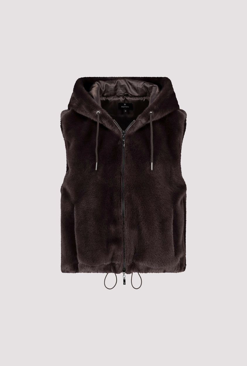 This stylish hooded vest made of cozy faux fur not only impresses with its fluffy feel, but also with practical details such as side pockets and an adjustable hem.