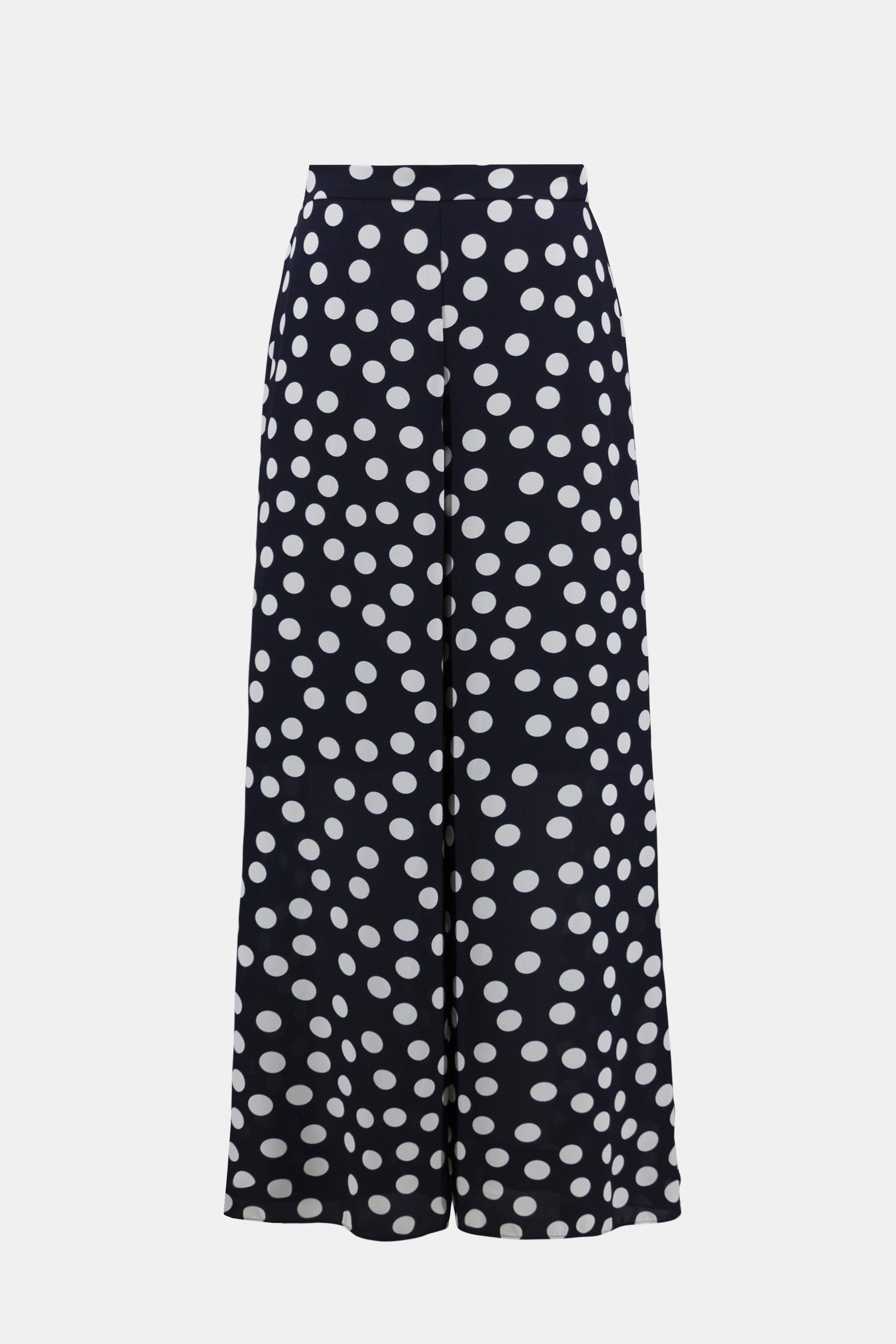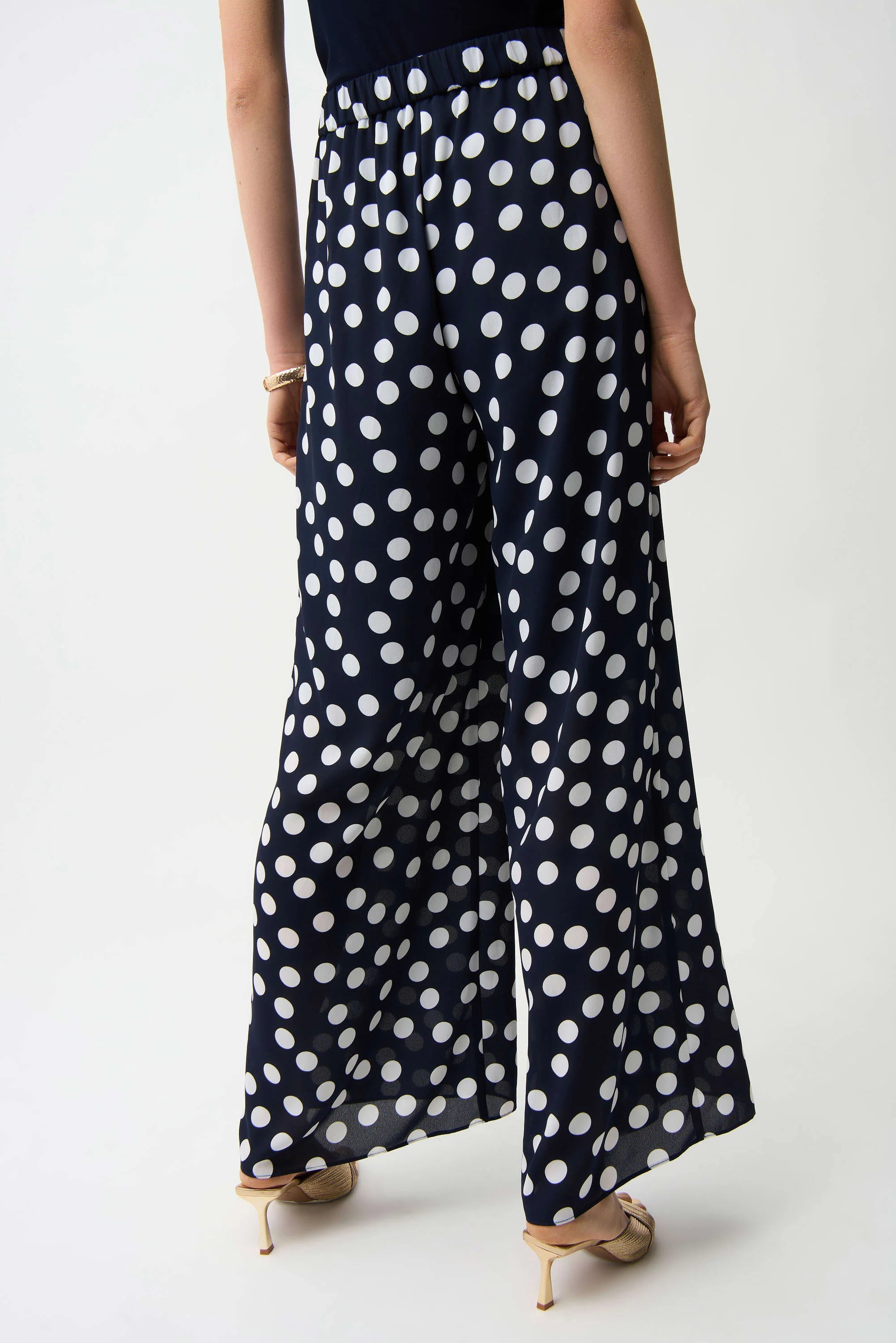 These lightweight georgette pants feature a playful dot print and a wide leg silhouette. The front folded waistband offers structure, while the back elastic adds comfort. Finished with partial mesh lining for subtle coverage.
