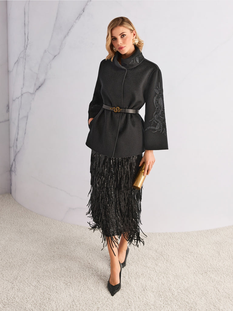 Coat with Embellishment Sleeve - Black