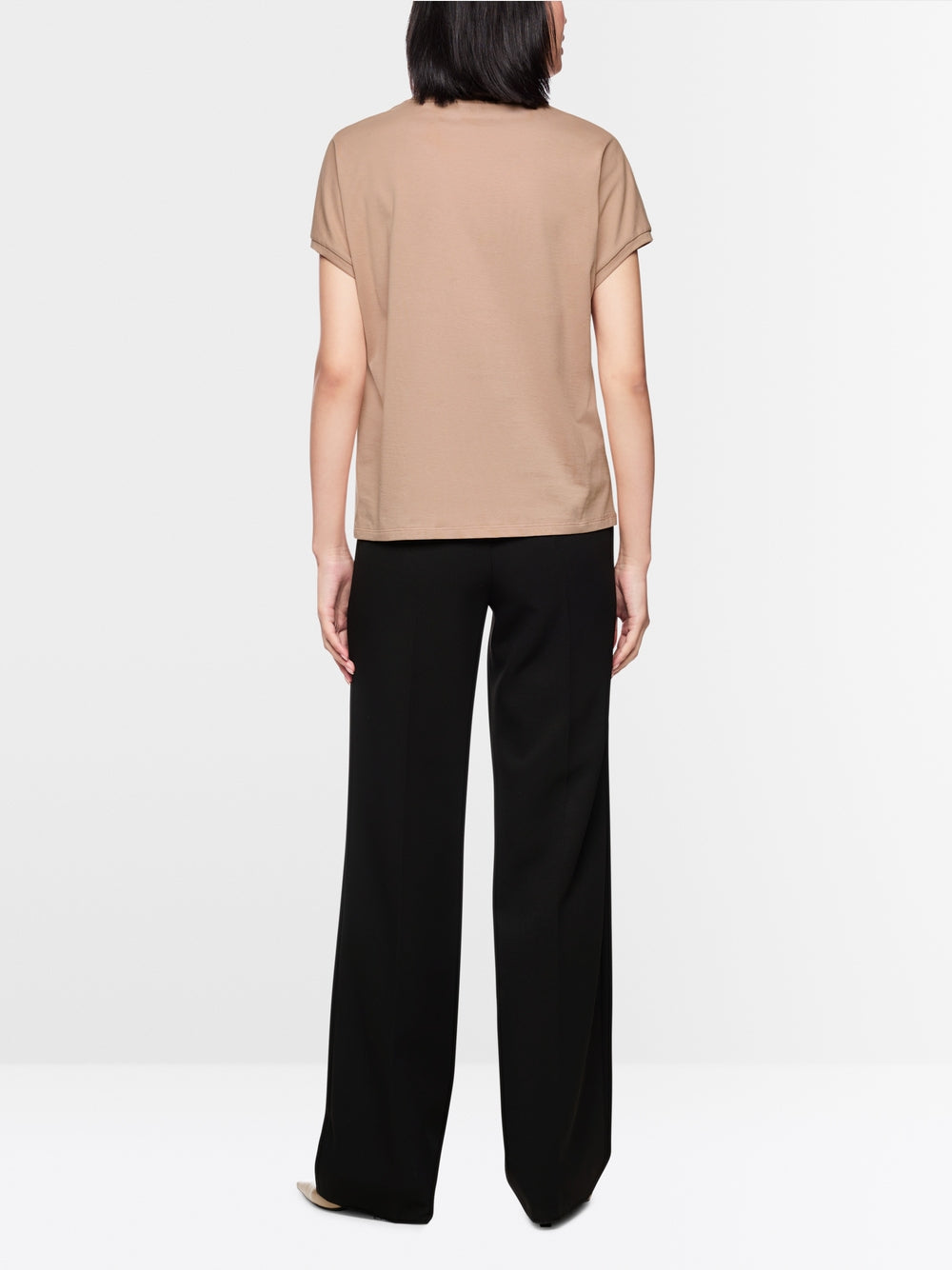 This T-shirt is made from 100% organic cotton and features a loose and slightly tailored cut. The V-neck and short, dropped shoulders complete the look. The white floral print on the front is embellished with foil details for a subtle sparkle. Lightweight and comfortable to wear, ideal for feminine casual looks. This T-shirt is from the ‘Rethink Together’ sustainability label.