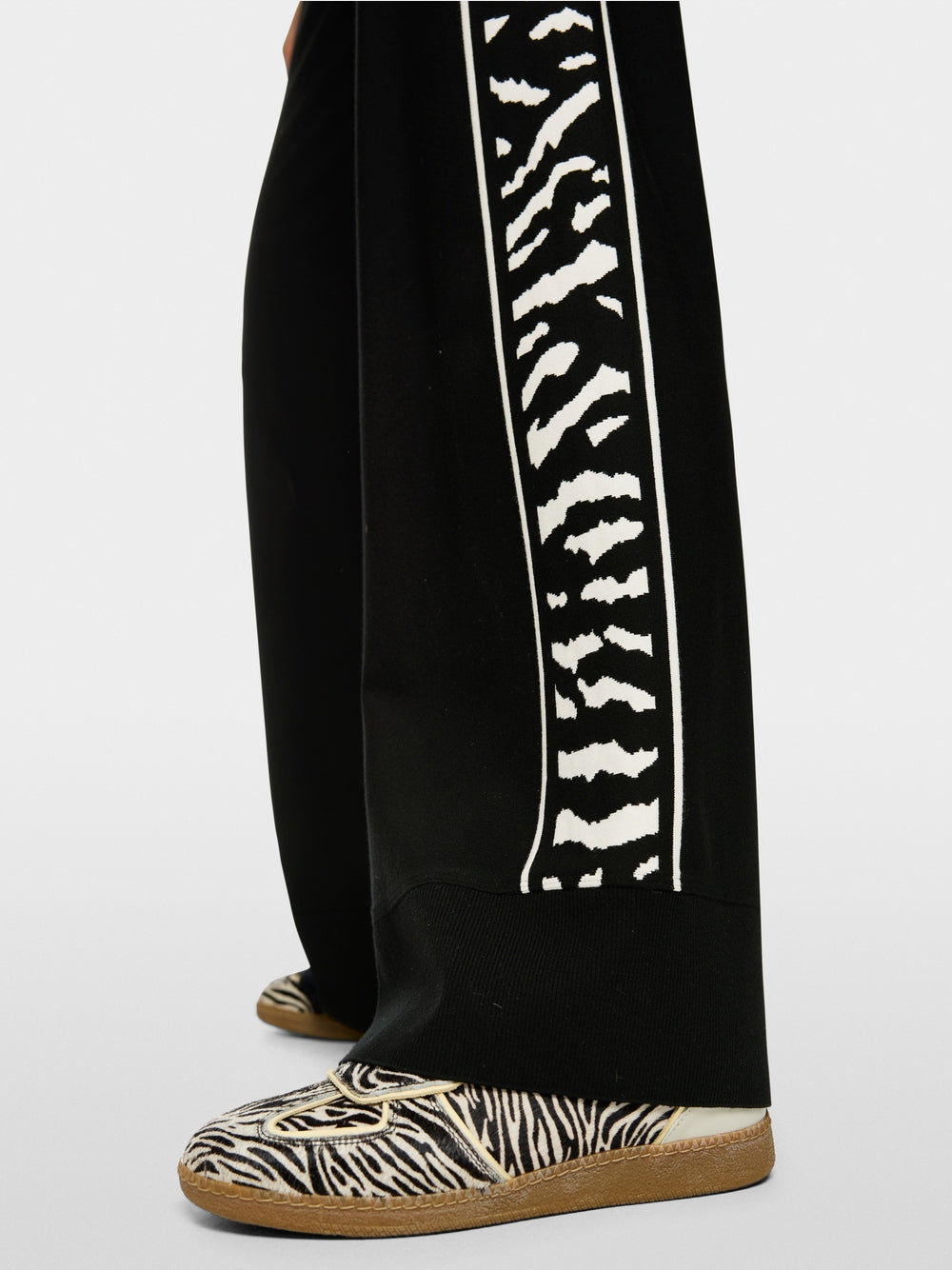 The WELKOM impress with their wide, long cut and elasticated waistband, which ensures a particularly comfortable fit. The soft material mix and wide knitted cuffs at the hem are a special detail. The wide side stripe with animal print is also an eye-catching feature. These trousers are made responsibly and from the ‘Rethink Together’ sustainability label. They are also Knitted in Germany.