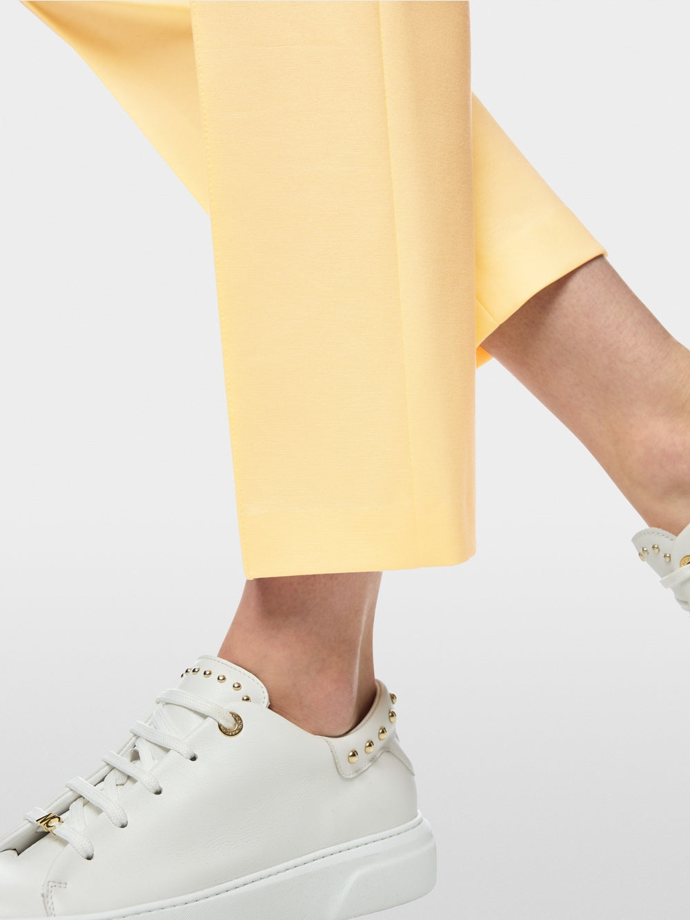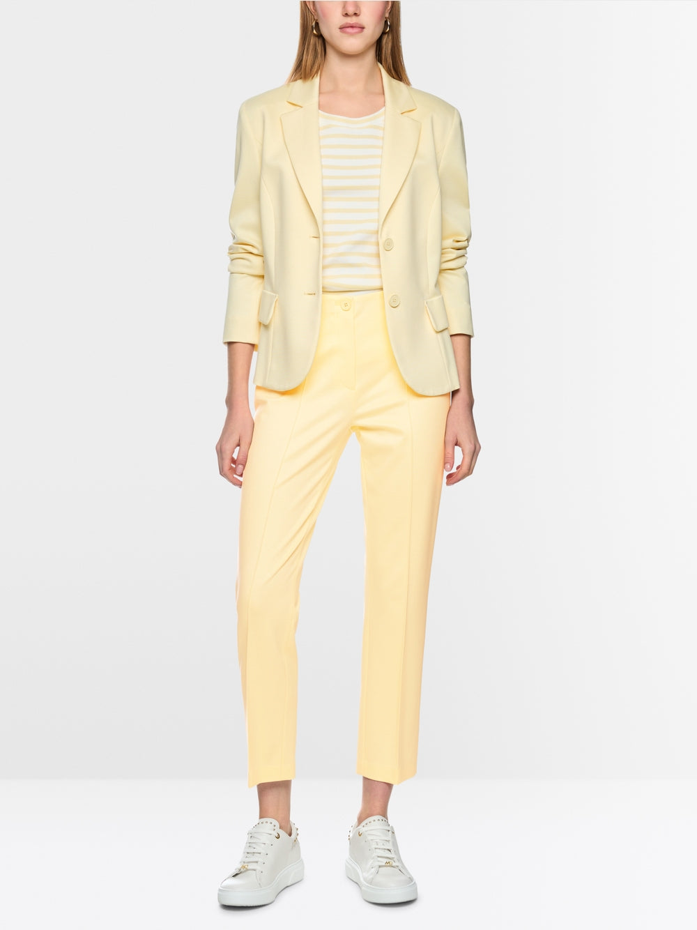 Model SYDNEY is a slim-fit pant with an inner elastic waistband. The leg is ankle-length and runs straight from the knee down. Sixties attitude is conveyed through the stitched crease. The model is designed without pockets, providing a harmonious contour. It closes with a zipper and button.