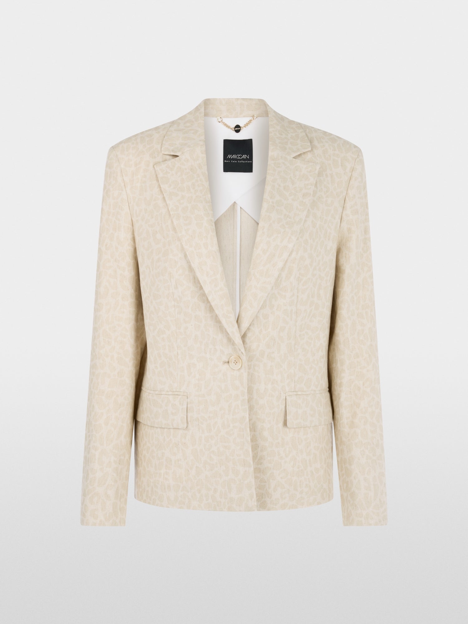 This blazer with shoulder emphasis impresses with a high-quality blend of viscose, linen and cotton. The subtle all-over leopard print adds a touch of fashionable elegance to the look. Slit sleeve cuffs, a single-button closure, classic flaps and a deep lapel emphasize the modern, confident silhouette.
