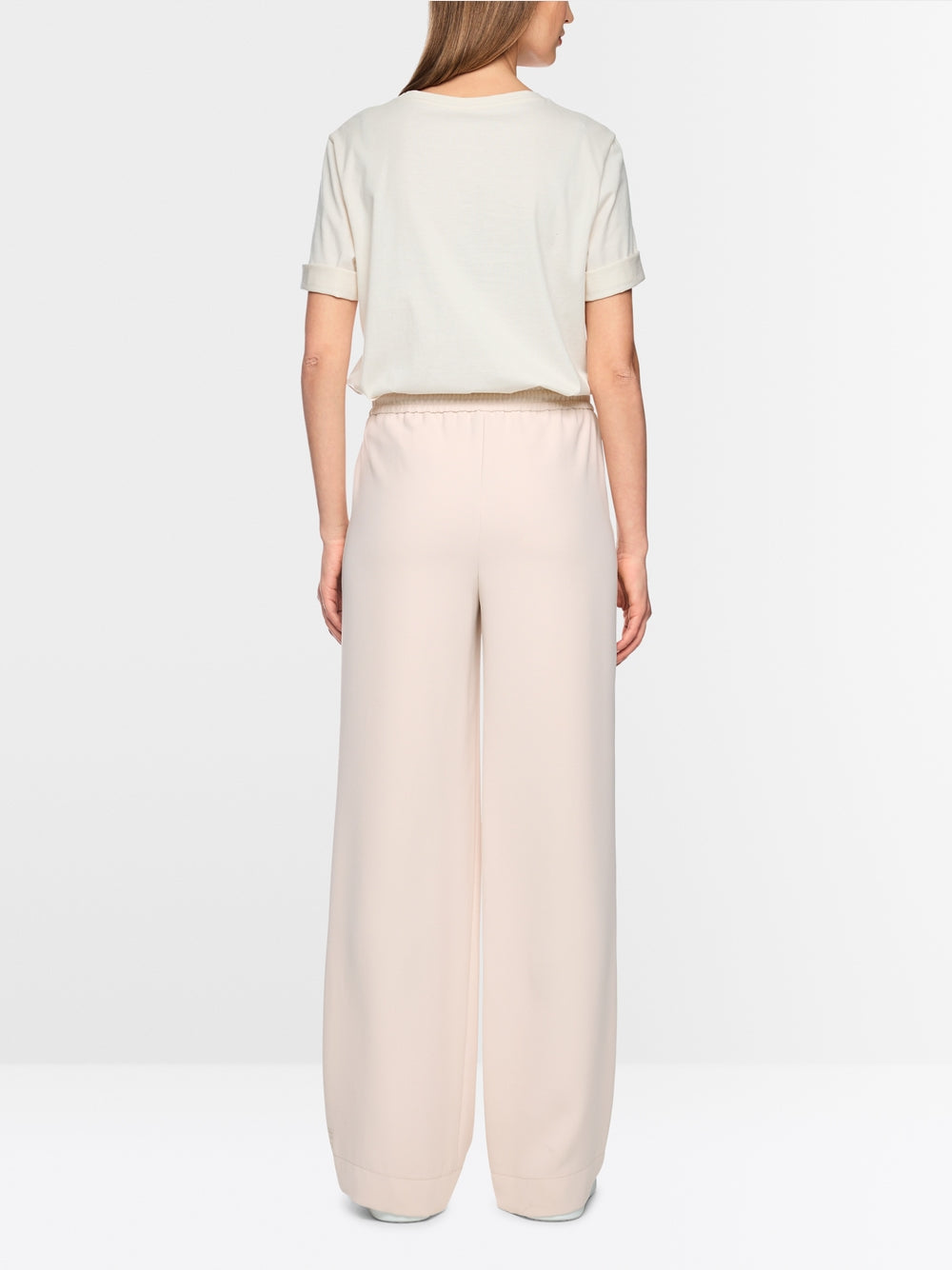 The WELKOM are a pair of jogging-style trousers with a soft, flowing silhouette. The wide cut, crease and extra length are particularly modern. The jogging-style elasticated waistband with integrated drawstring ensures a comfortable fit. With practical side pockets.