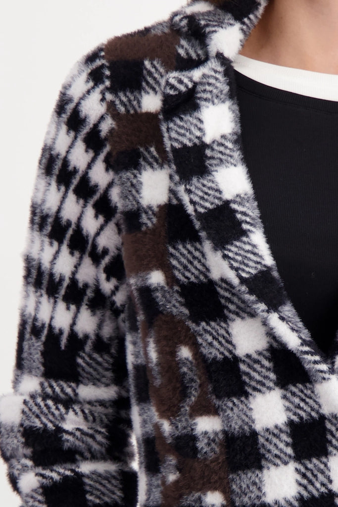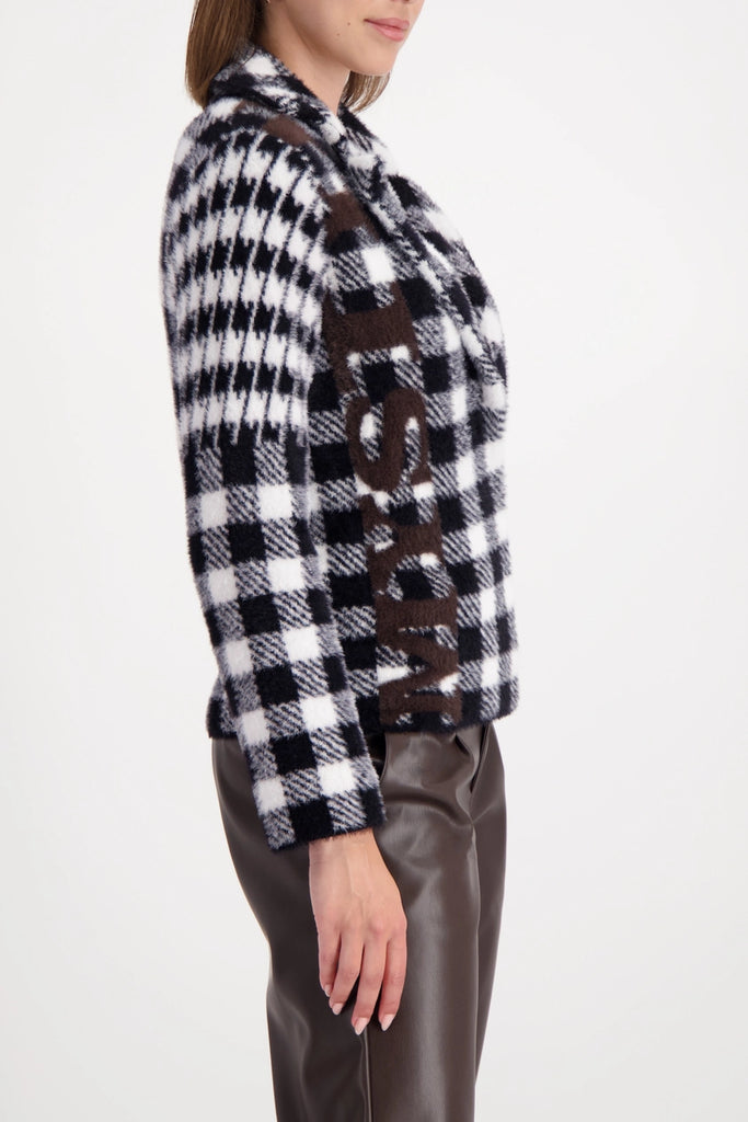 Fluffy cardigan with a mix of patterns and a "My Style" logo – for a stylish look.