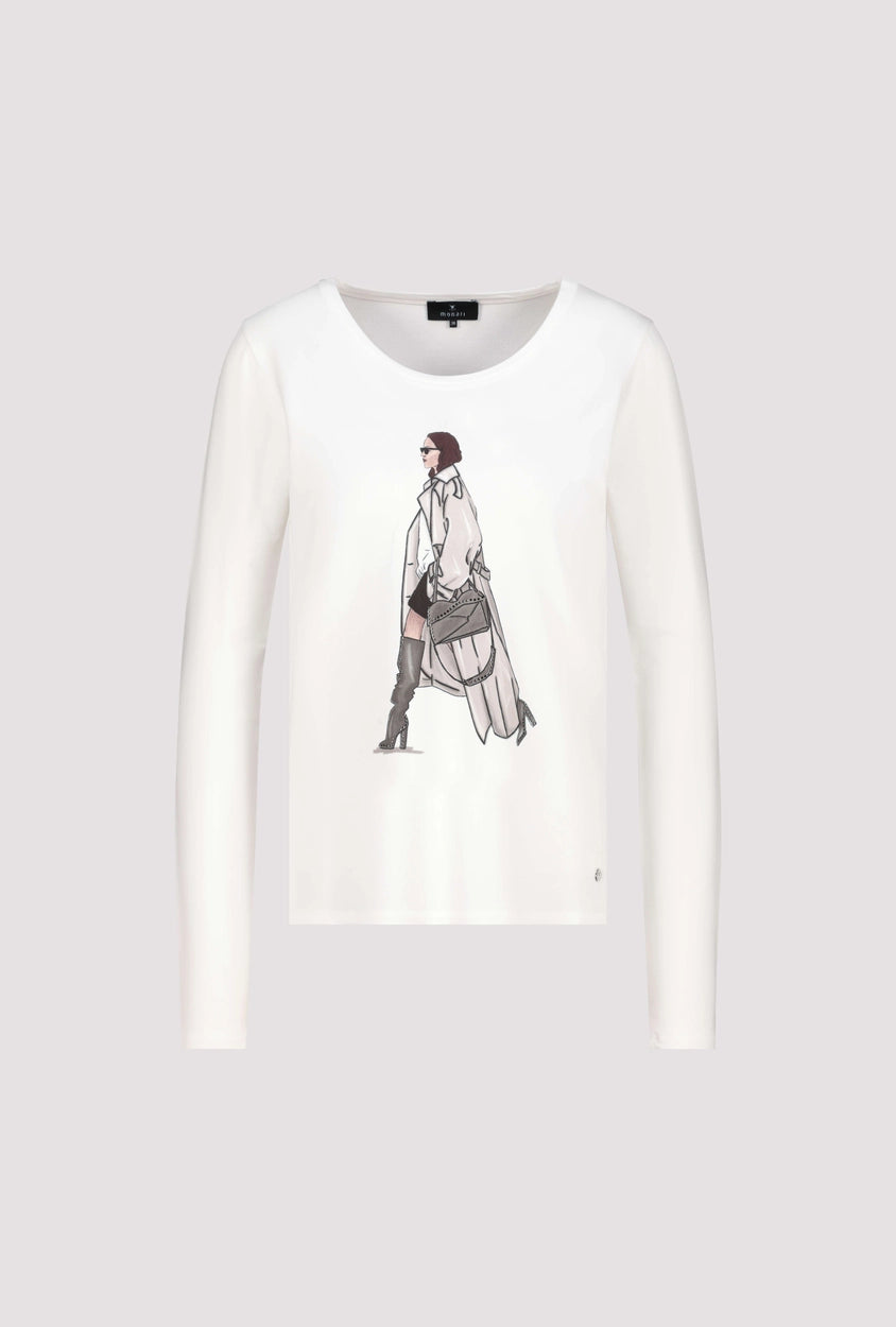 Elegant long-sleeve shirt made of flowing viscose with rhinestones and a women's print for a sophisticated appearance.