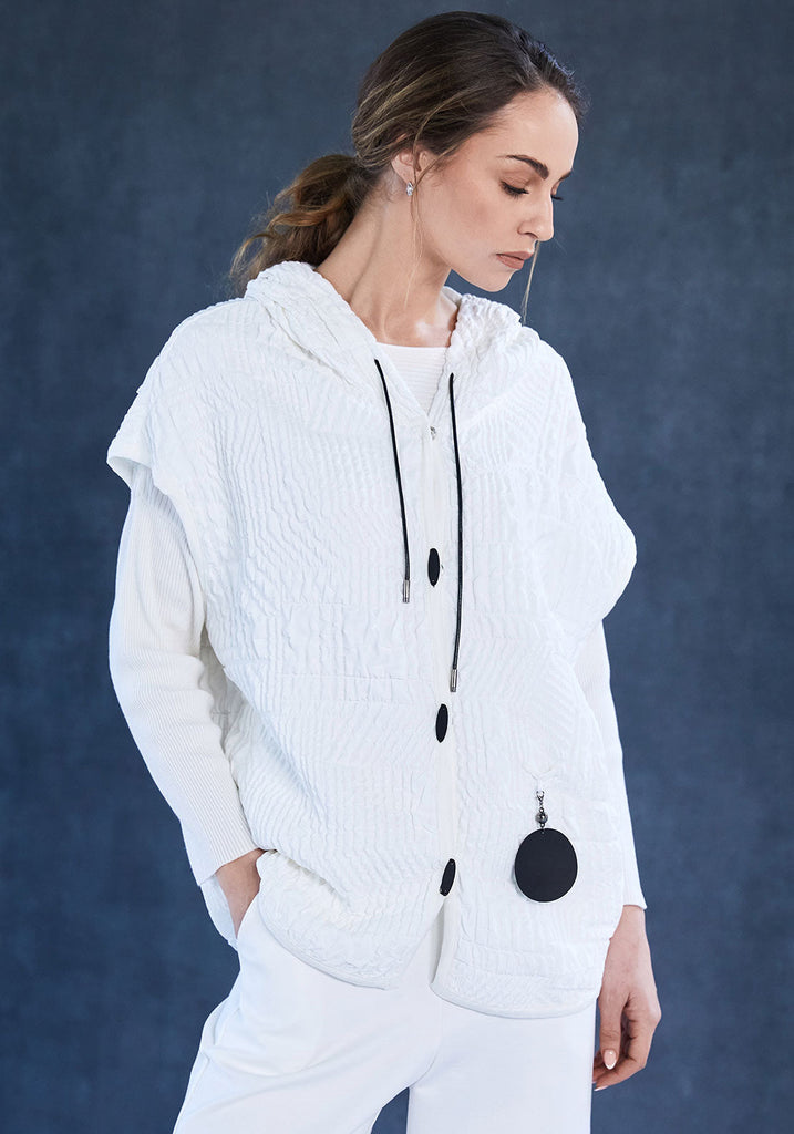 Hooded Top with Contrast Ribbed Trim Det - Black and Taupe