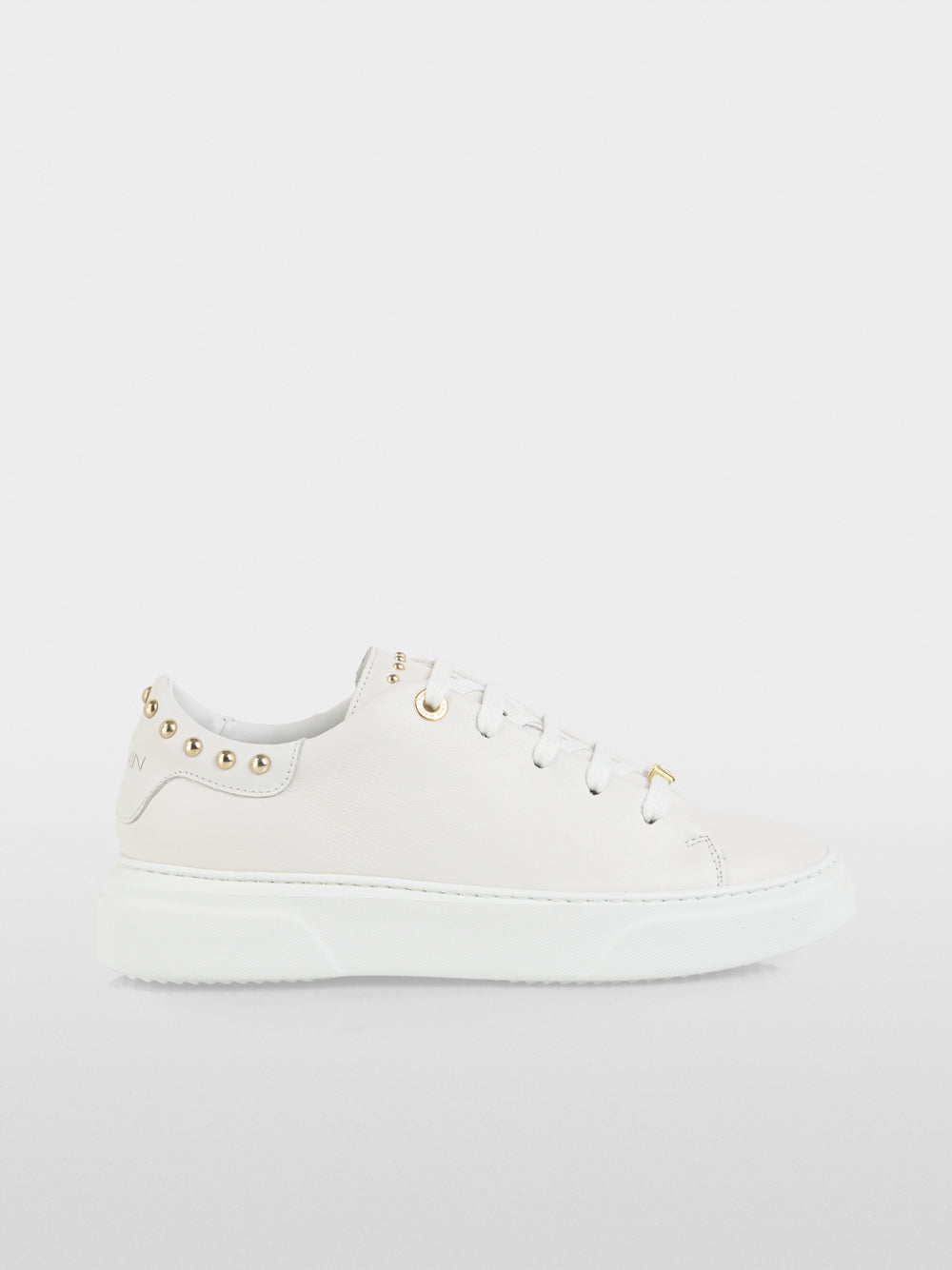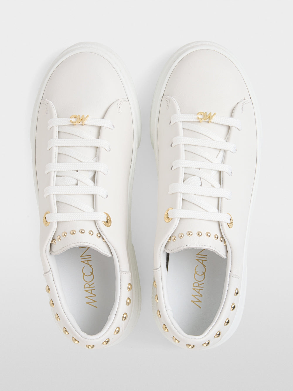 Stylish trainers made from high-quality leather with a round shape and sturdy cup sole. Shiny stud details and a subtle MC embellishment add fashionable accents. The soft leather lining inside ensures comfort with every step.
