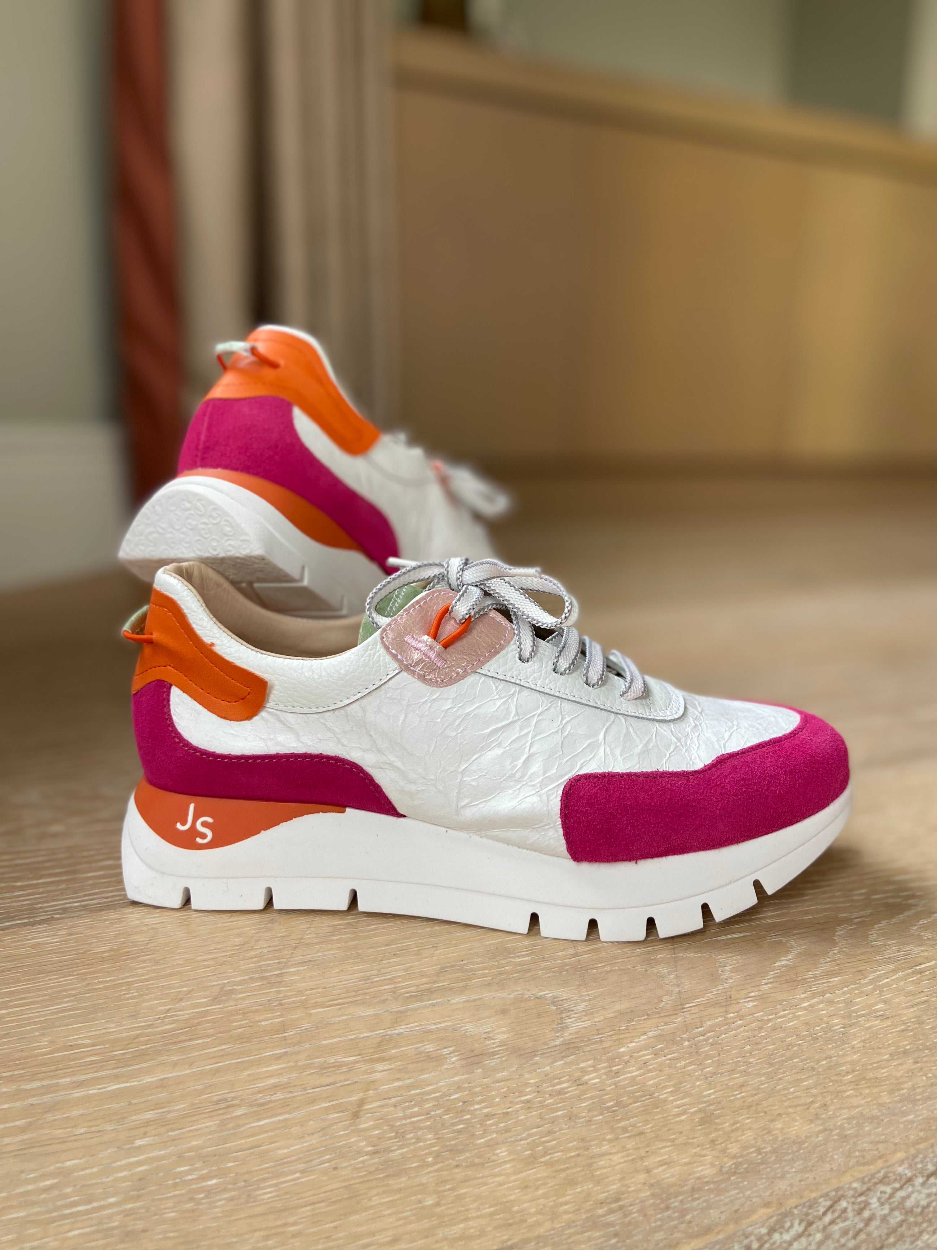 Chunky Sole Colour Block Trainer - Fuchsia and White