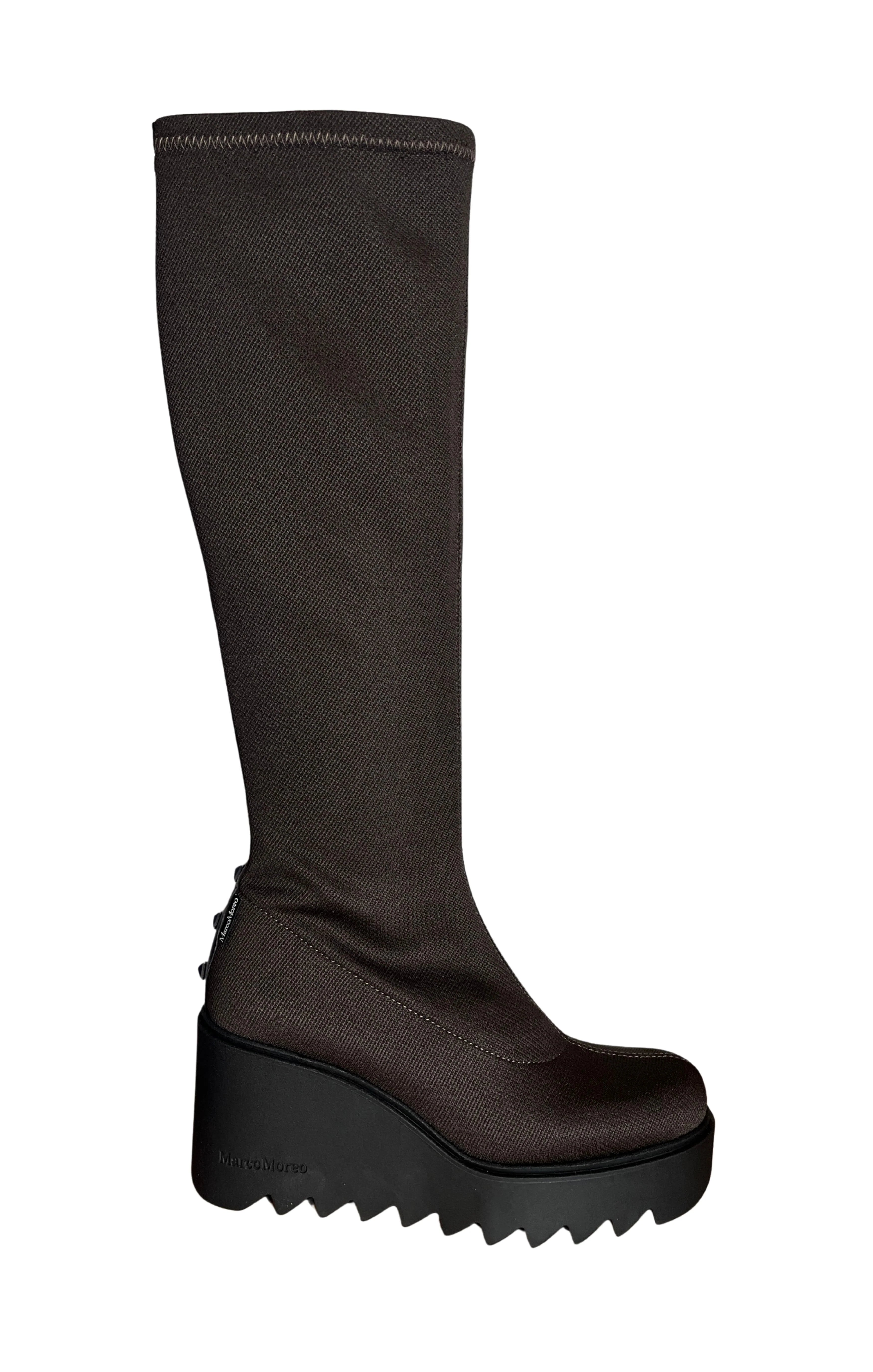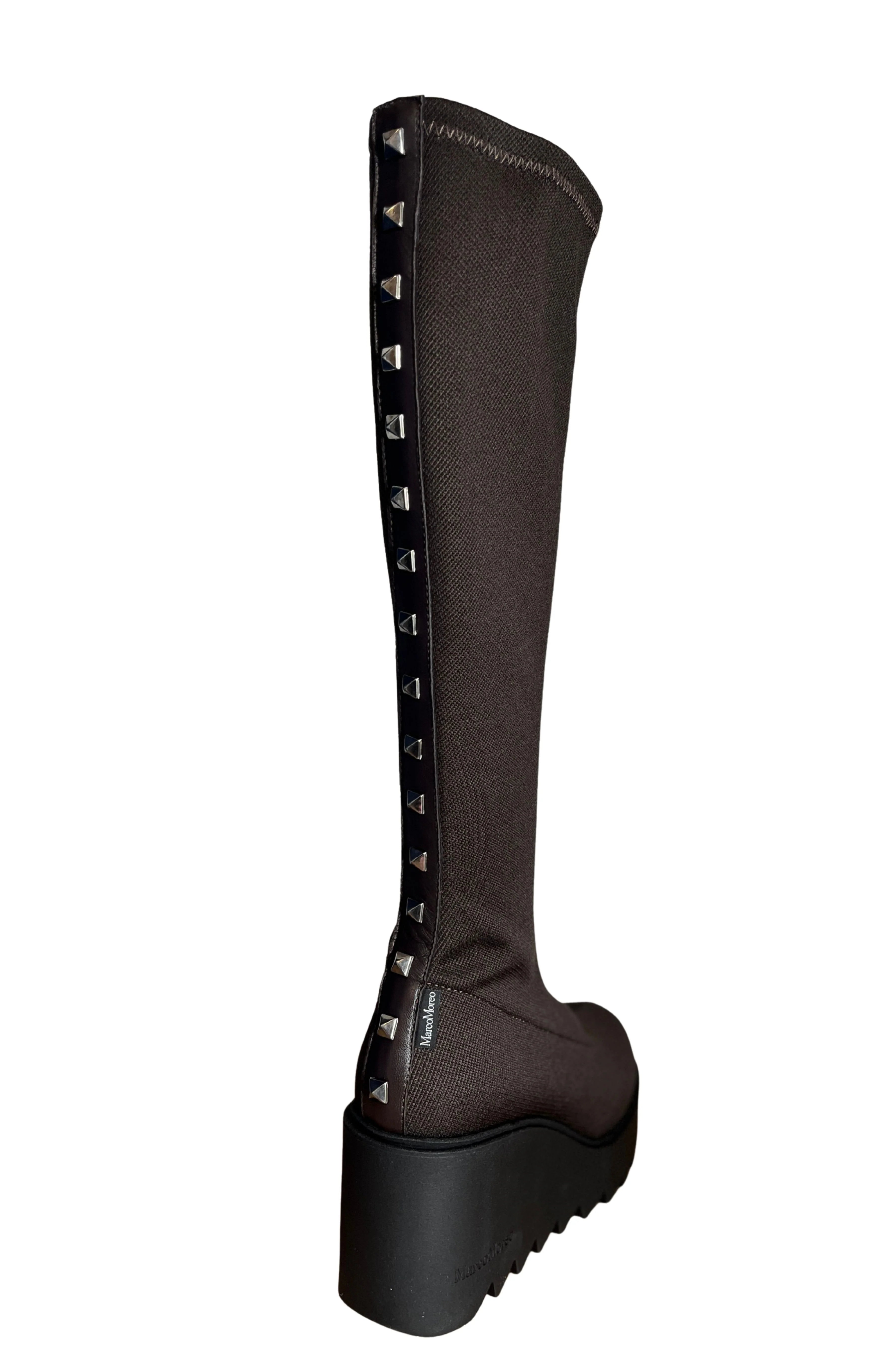 Wedge Knee Length Boot With Studs - Brown
