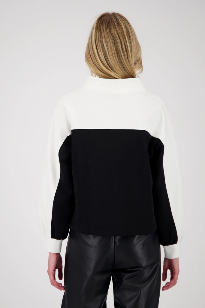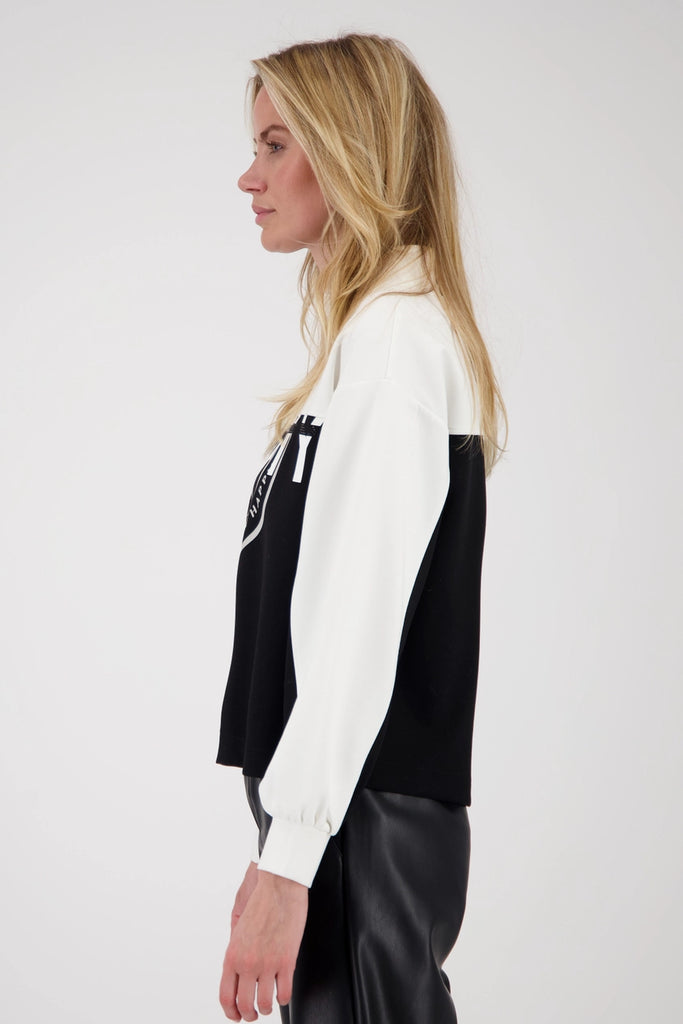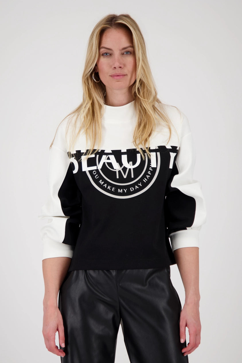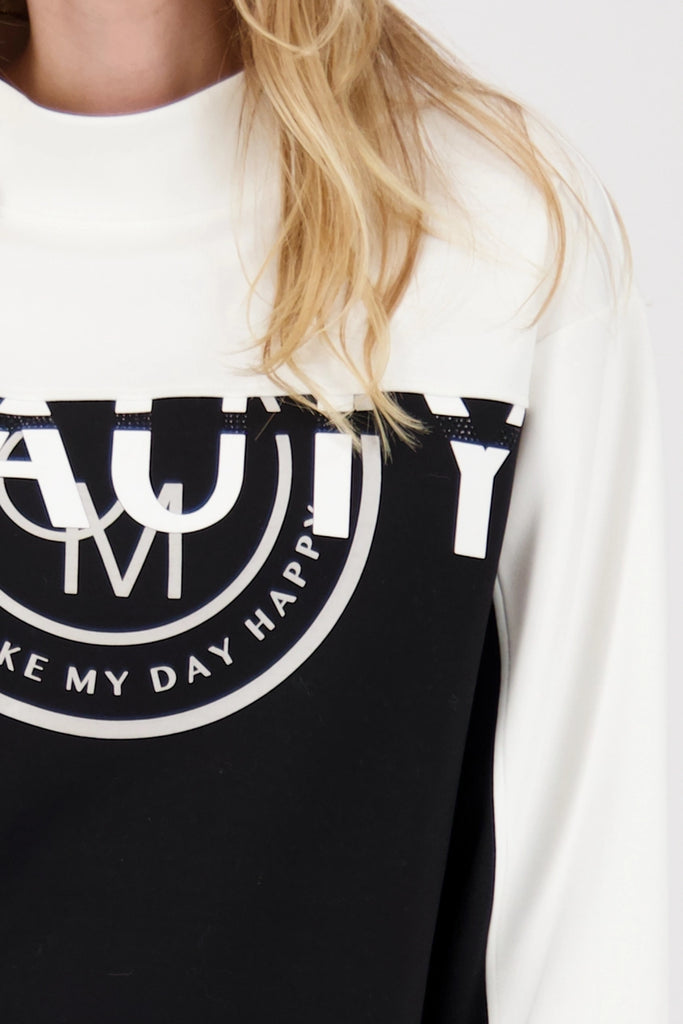 This elegant sweater made of flowing viscose with a color-blocking design, rhinestones, and "Beauty" lettering adds stylish confidence to any look.
