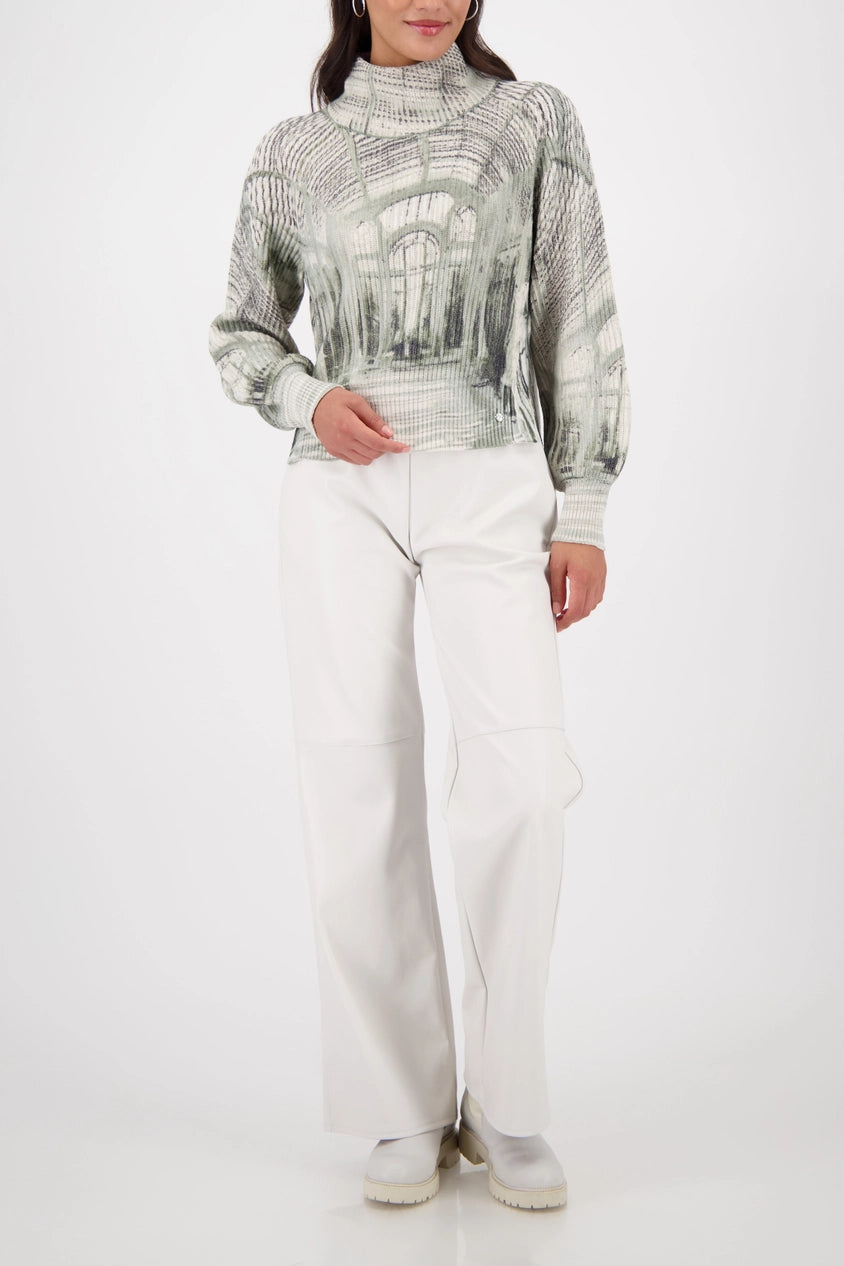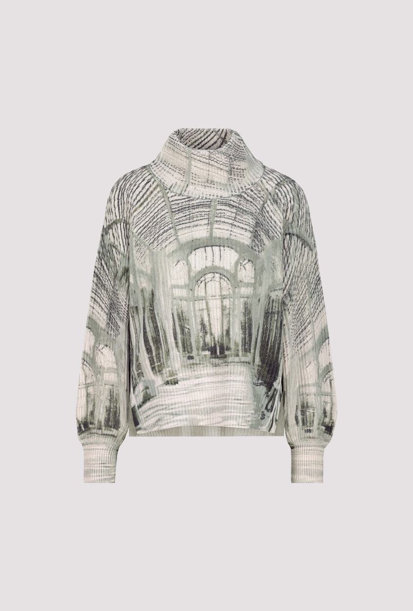 Elegant knitted sweater made from high-quality cotton with side slits and a striking gallery print for stylish comfort.