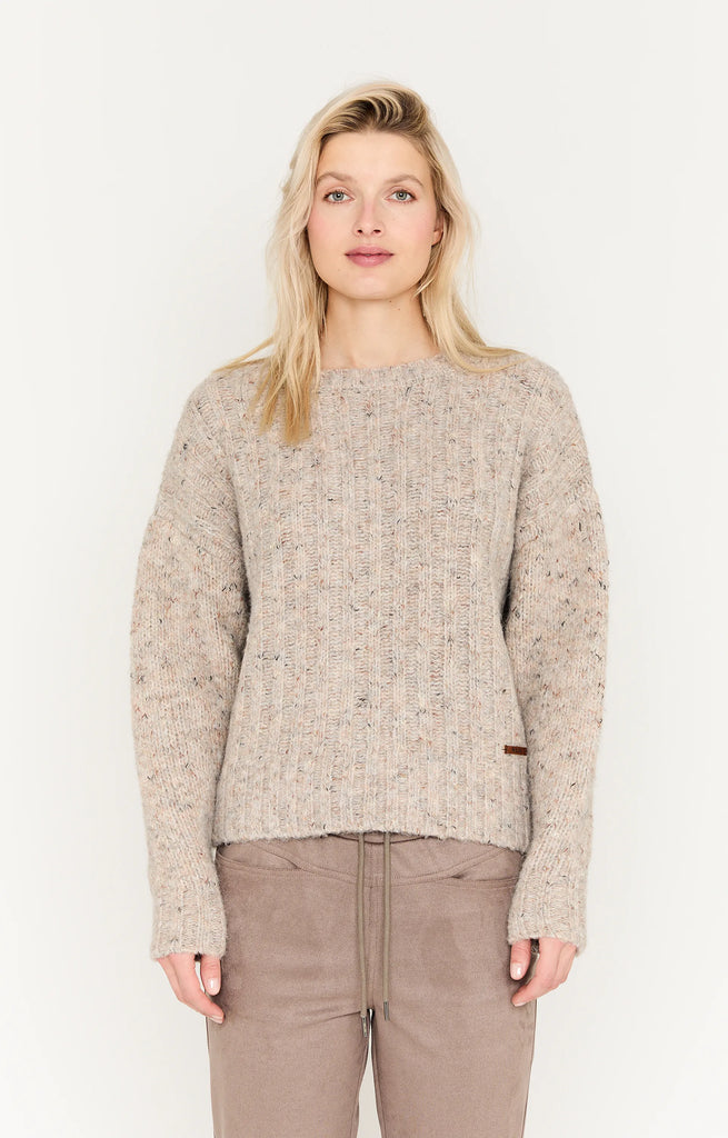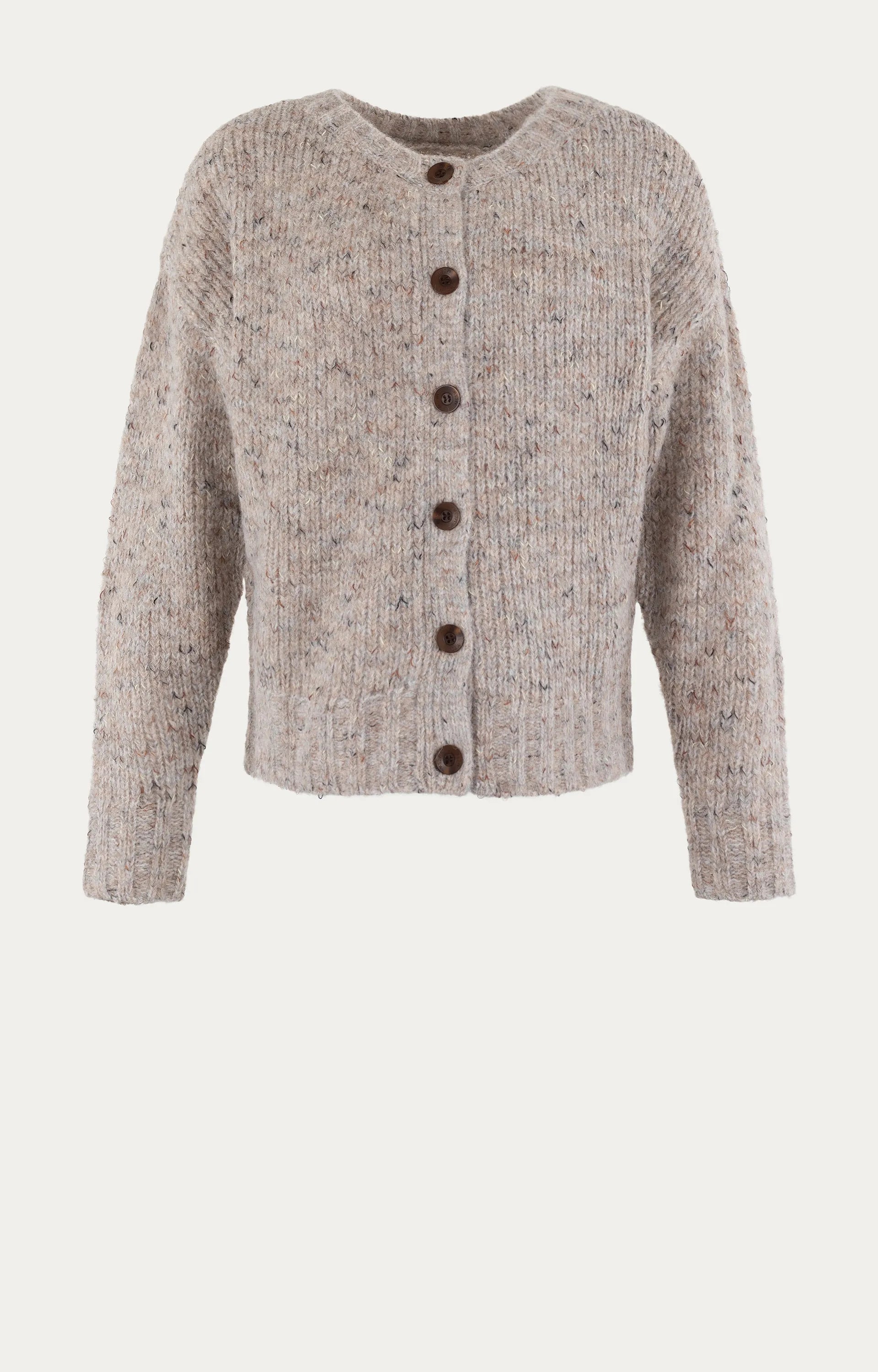 This taupe-colored reversible winter cardigan from Moscow is made from a comfortable blend that includes wool and recycled polyester. The straight fit and mélange texture create a warm and cozy look. The buttons on the front add a natural touch and subtle detail. Ribbed cuffs and hem provide a clean finish and extra comfort. Perfect for layering on colder days.