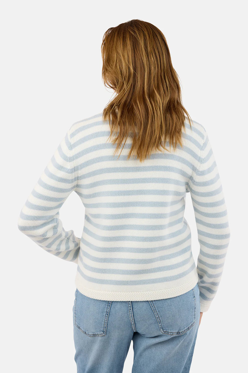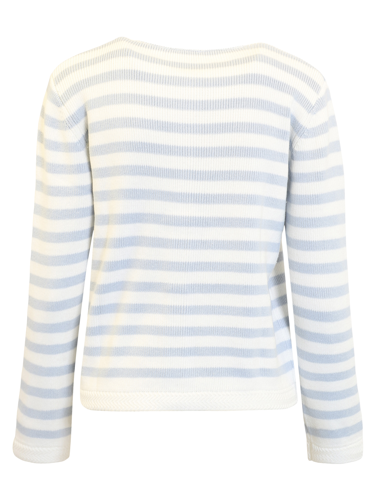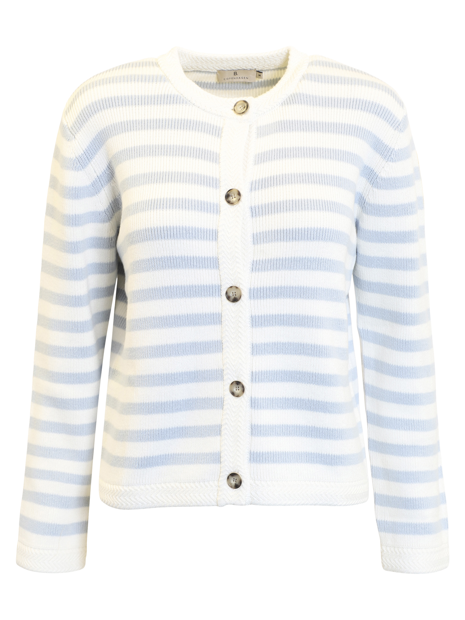 Classic and feminine cardigan from B. Copenhagen, knitted in a beautiful striped design in light blue and off-white shades, giving a fresh and timeless look. The soft knit quality feels comfortable against the skin and makes the cardigan ideal for both everyday wear and more formal occasions.