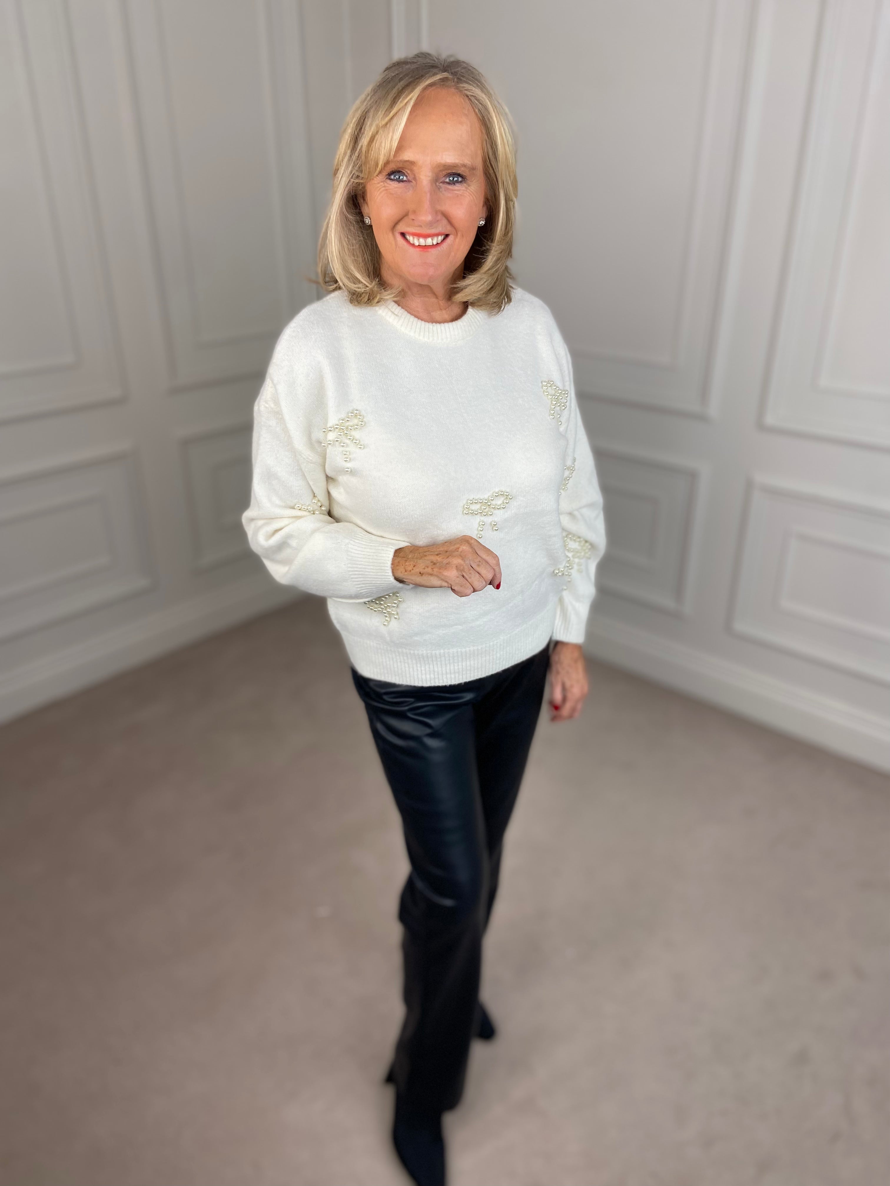 Sweater with Pearl Bow Detail - Ivory