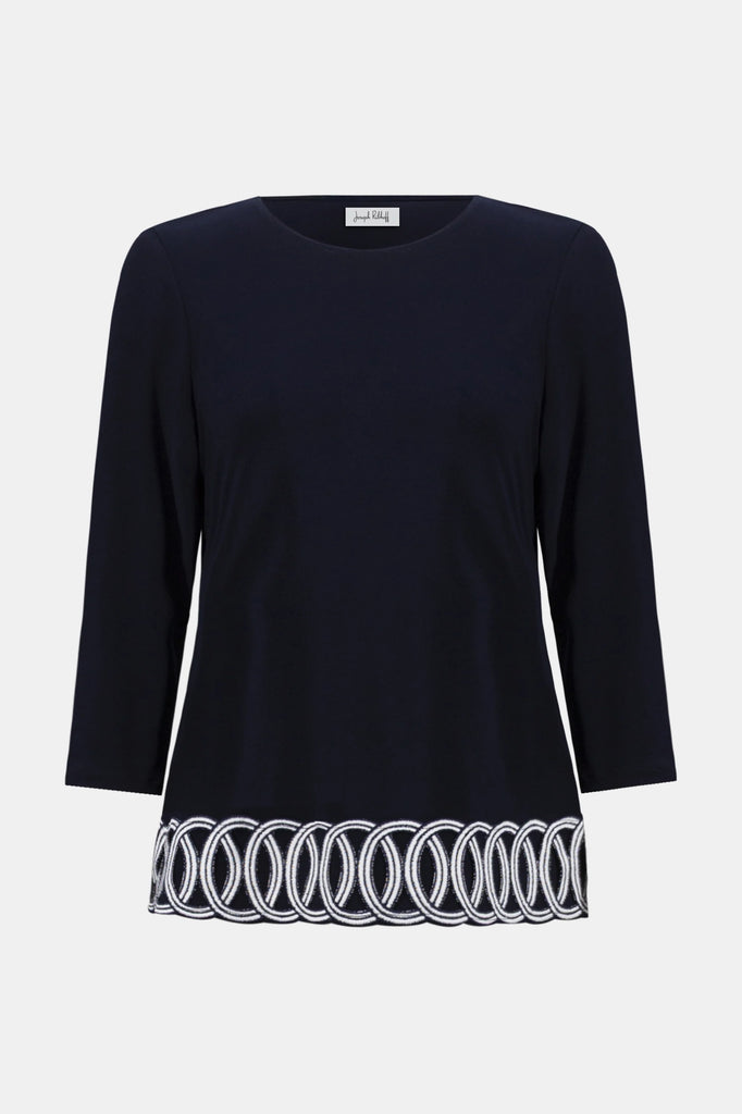 Fitted Top With Guipure Hem Detail - Midnight Blue and Vanilla
