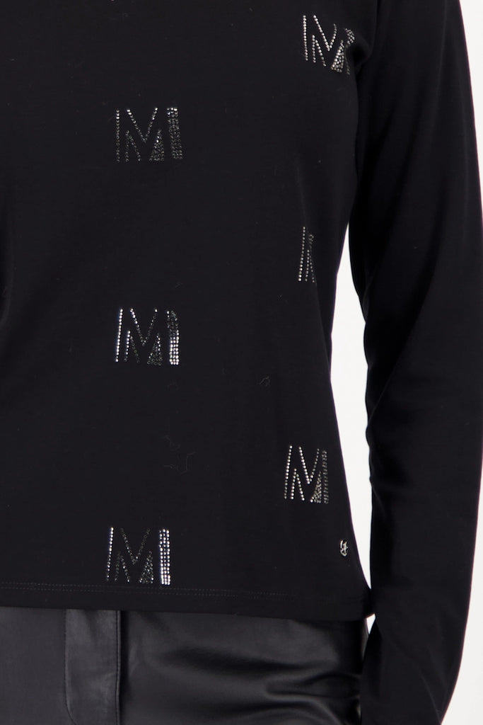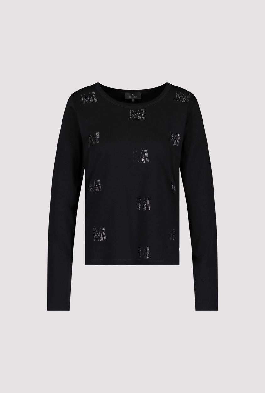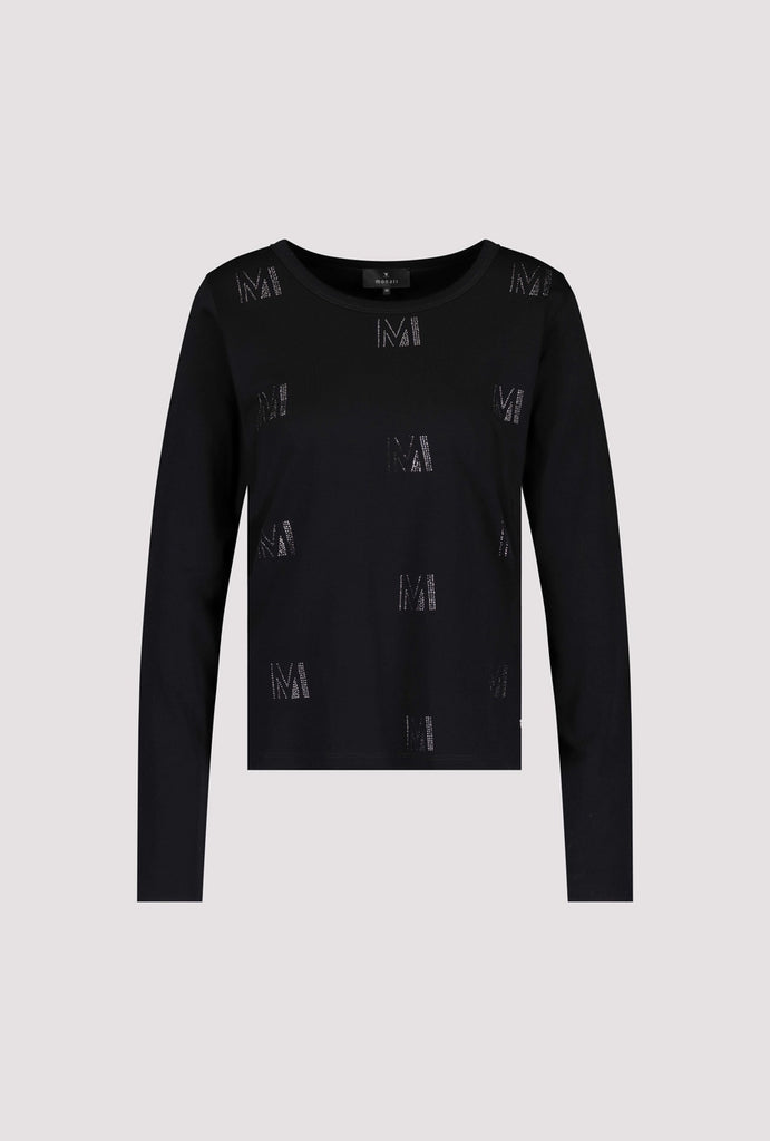 Discover the long-sleeved shirt made of 100% cotton, decorated with a sparkling rhinestone pattern and an elegant round neck.