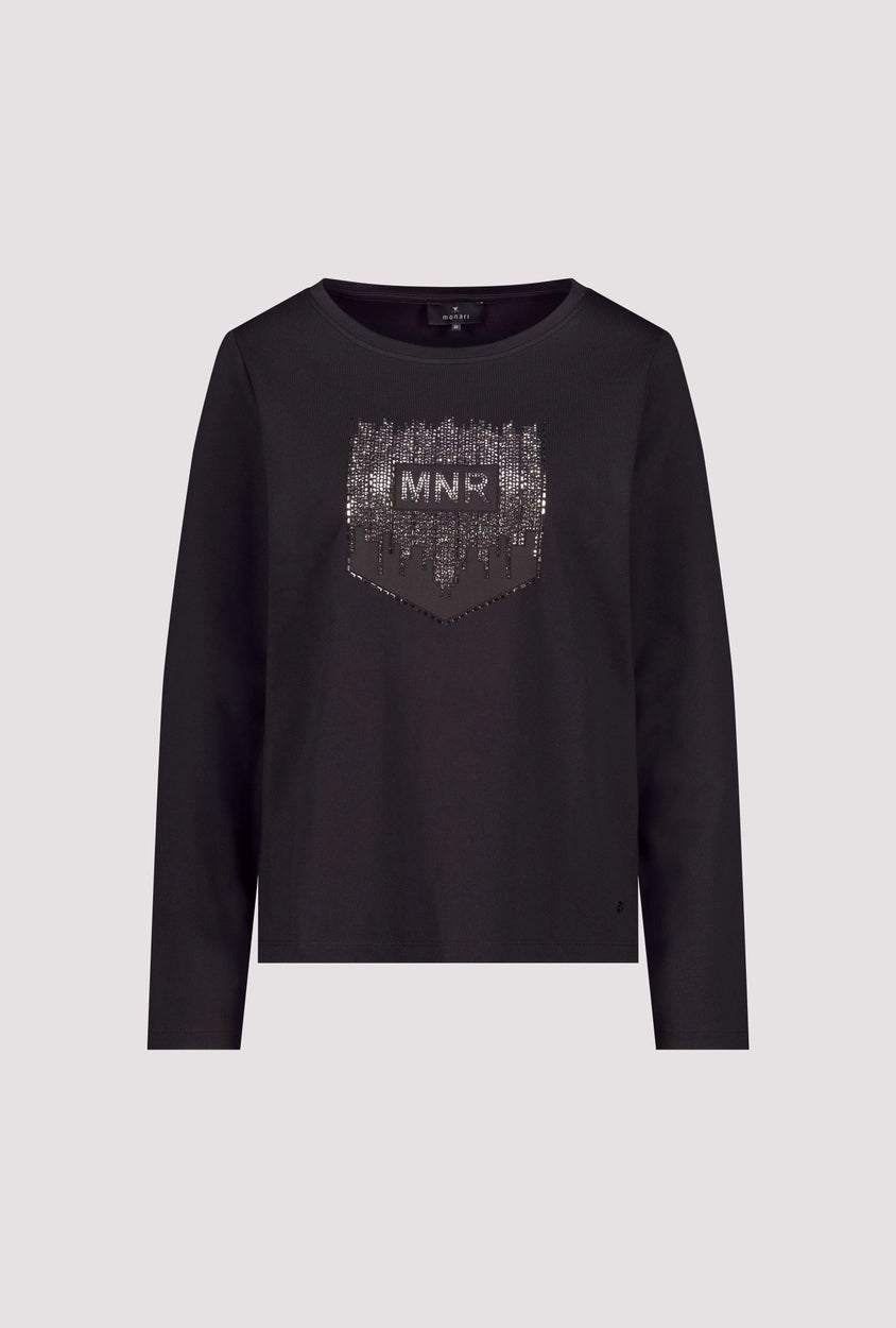 This elegant long-sleeved shirt made from a high-quality cotton blend impresses with its soft feel and sparkling rhinestones.