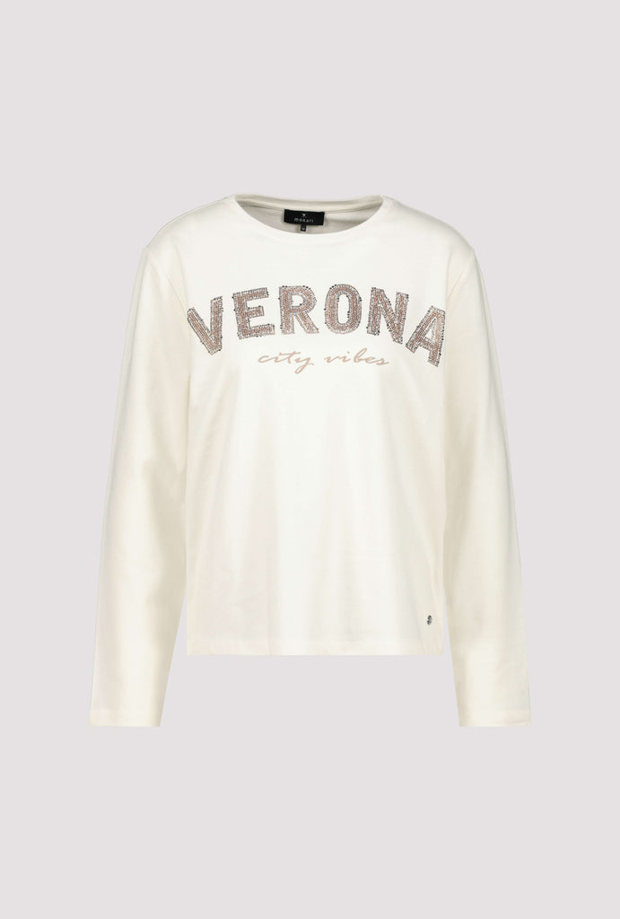 Discover our stylish sweatshirt made of high-quality cotton with modal, decorated with rhinestones and the elegant "Verona" lettering.