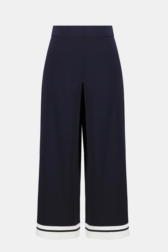 These sweater knit culotte pants, crafted from dry viscose and nylon yarn in full needle stitch, feature a bold border stripe for added flair. With an inserted elastic waistband, they offer both comfort and style, making them an effortless addition to any wardrobe.