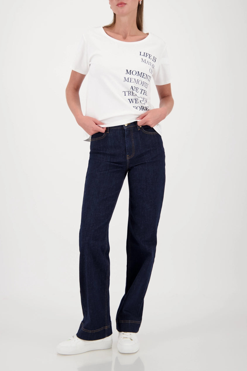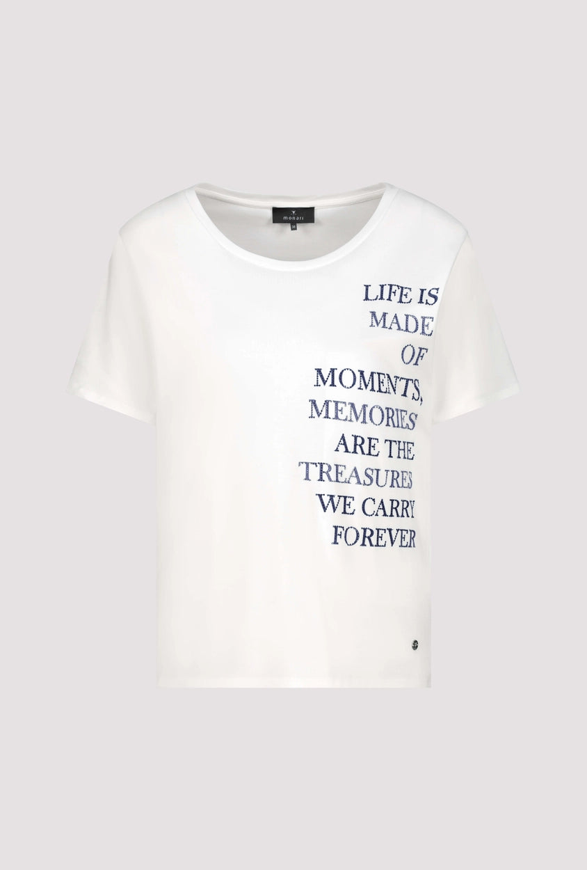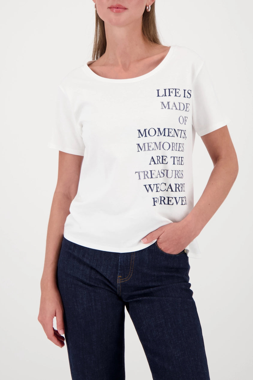 Stylish shirt made from 100% cotton features a round neckline and a sparkling rhinestone lettering.