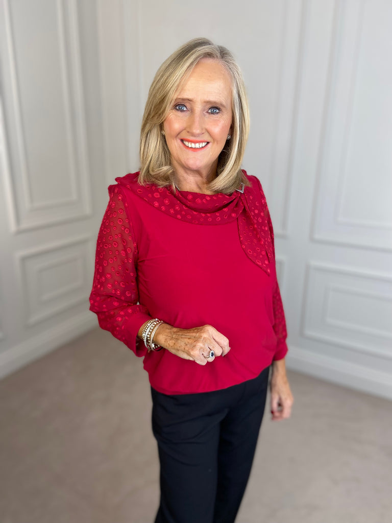 Cowl Top with Brooch - Red