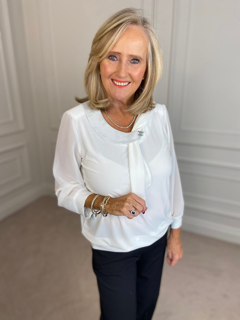 Blouse with Brooch - White