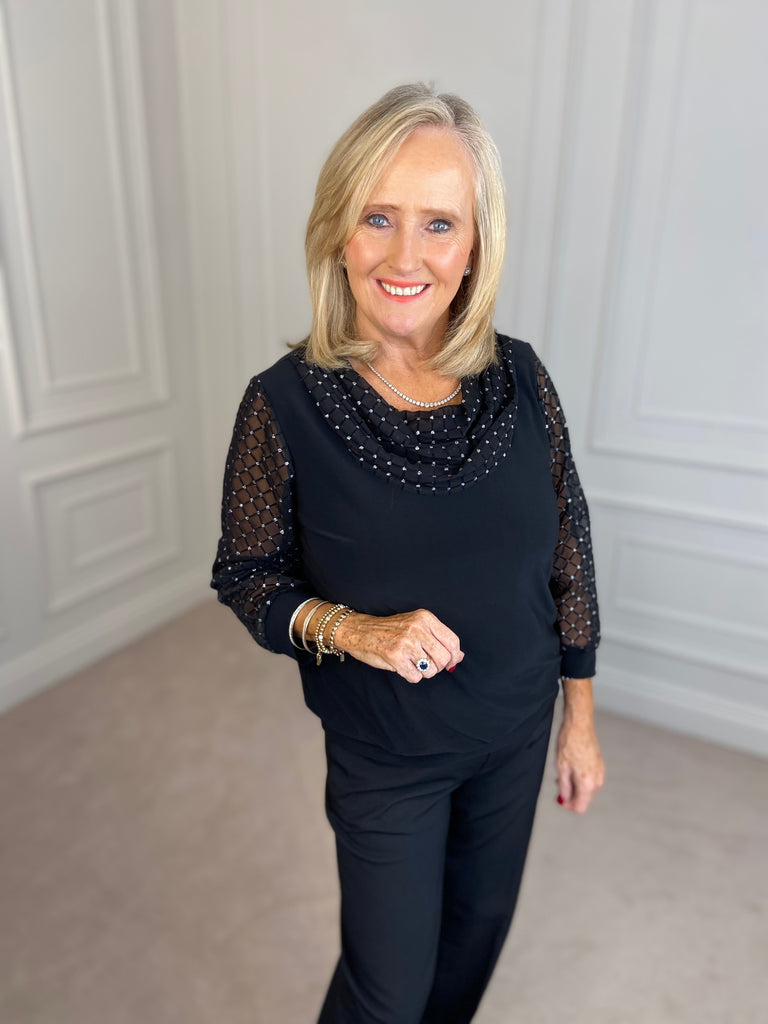 Velvet Cowl Neck Top - Black