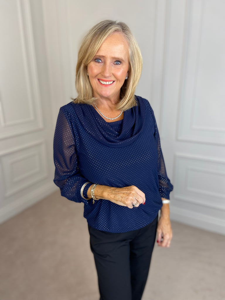 Cowl neck Top - Navy